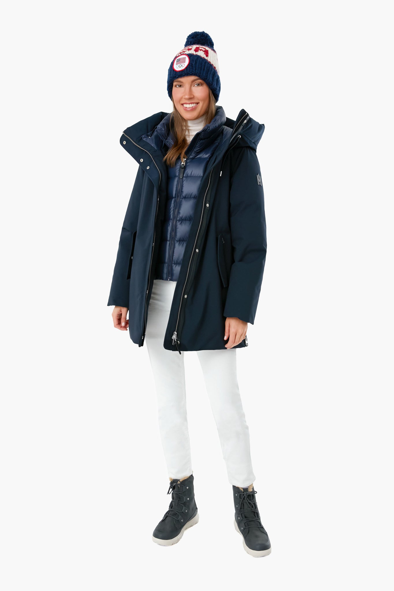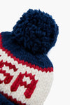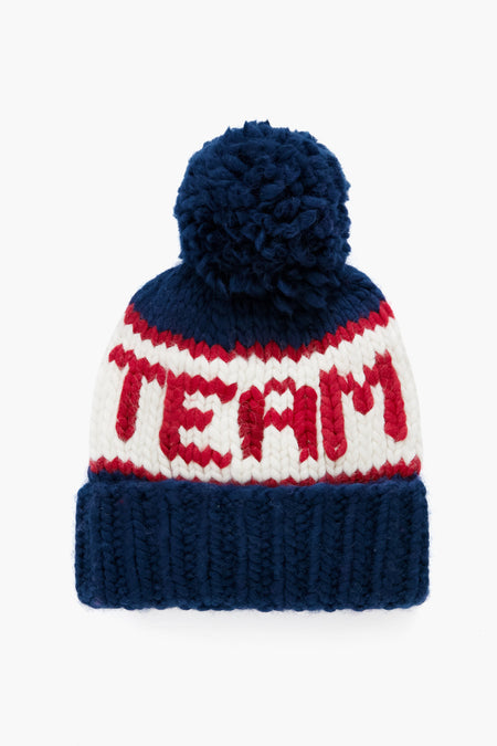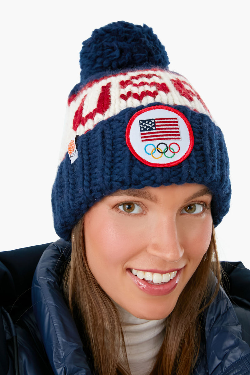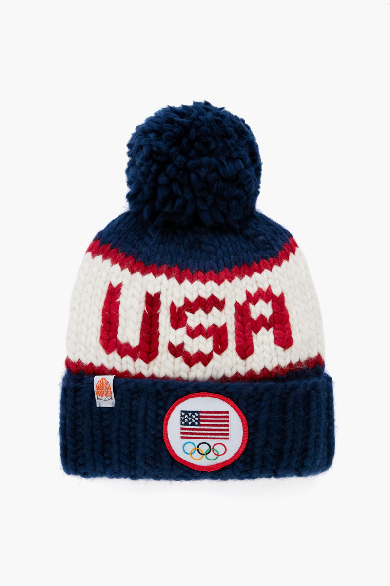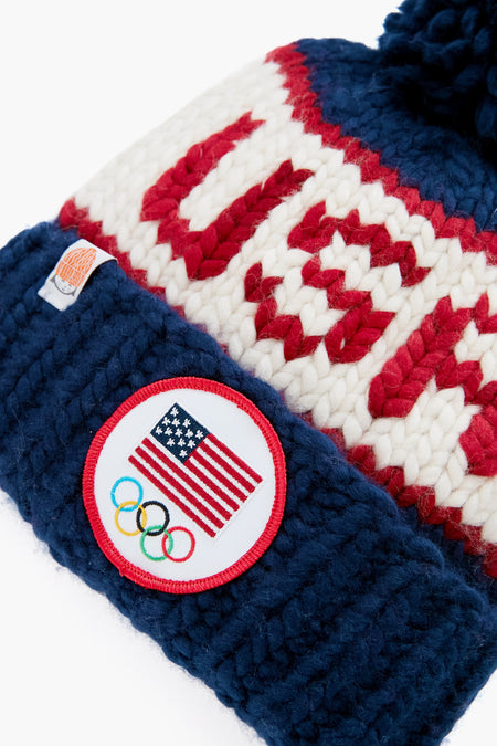 Go for the gold! Introducing the Team USA Beanie, an official product of Team USA. This hat features the U.S. Olympic Team mark, custom "Team USA" stitching, and a navy yarn pom pom for a playful touch. Whether you're hitting the slopes or drinking hot toddies in the lodge, stay warm with this cozy number.