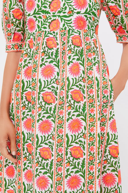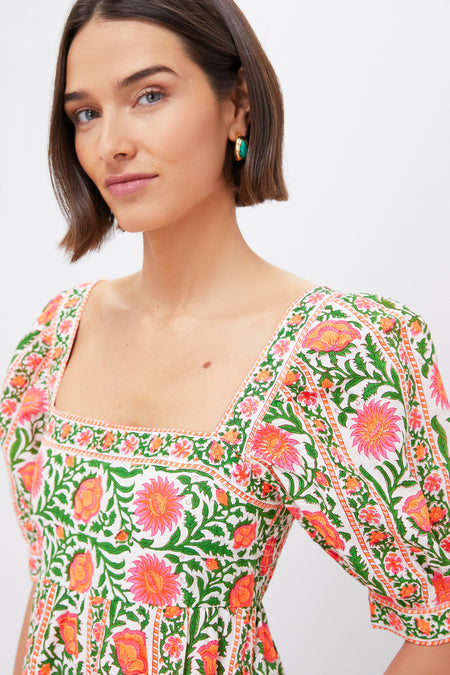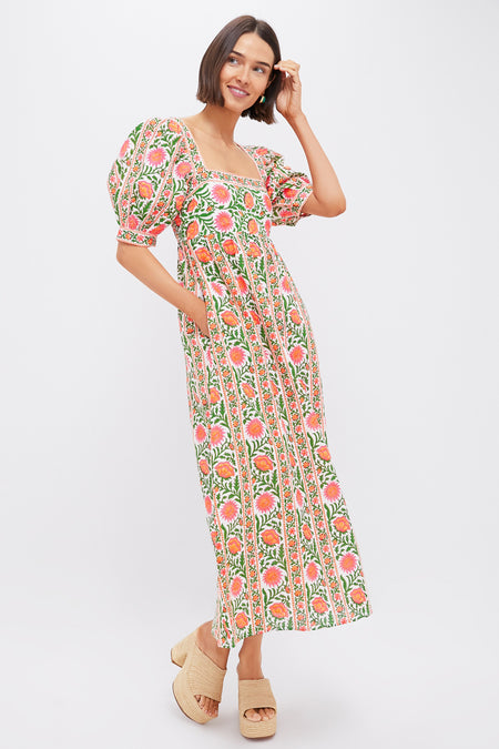 The Elizabeth Dress in this bold Neon Border print is all about effortless luxury. Featuring a chic square neckline and a flattering empire waist, the silhouette drapes beautifully, offering both comfort and sophistication. We are styling this look with espadrilles and statement earrings for all of our warm-weather events!