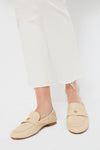 The New Cream Ballet Loafer is an interpretation of two classics — the flexibility of a ballet slipper with the profile of a loafer. The insole provides performance-level comfort, ruched sides secure the foot and treads on the outsole add traction. Crafted in leather and detailed with a Double T in brushed gold, this is an elevated everyday look. Pair with everything from denim and a blouse to maxi dresses.