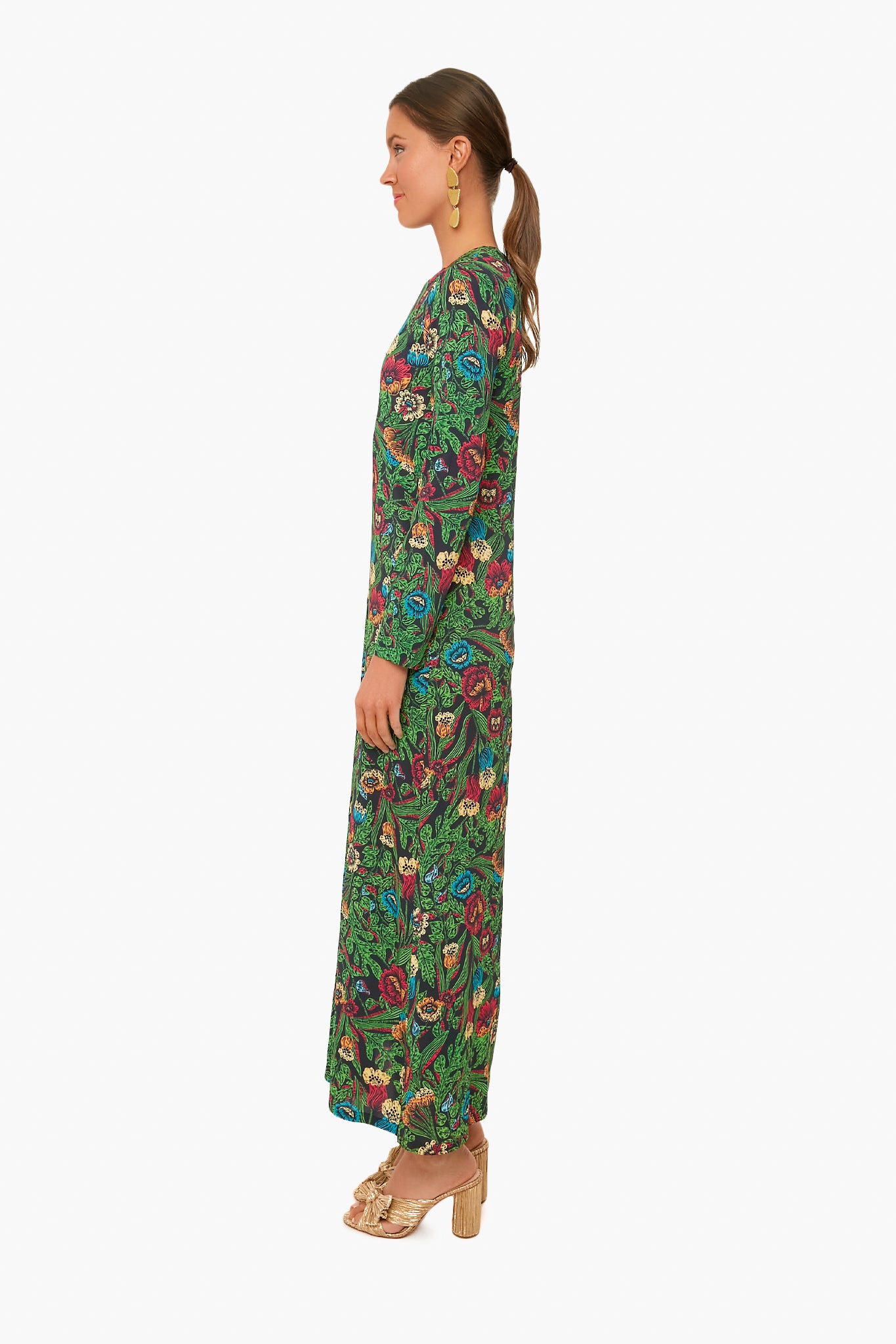 The Night Garden Long Sleeve Swing Dress was designed in a luxe floral print and made from a Sablé fabric to give it a little stretch and make it a bonafide day-to-night number. Pair with gold jewelry for a fun, date night look.