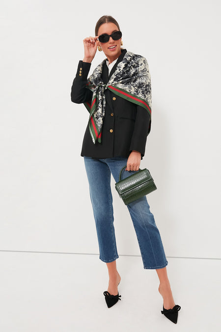 Classic style meets colorful accent with the Noir Cypress Toile Scarf. Throw this luxe stunner over your shoulders for a pop of fun or wrap it around your neck for a little extra warmth, the possibilities are endless with this wardrobe staple.