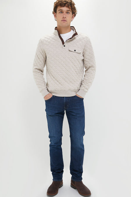 The Oatmeal Melange Epic Fleece Pullover is our new favorite layer for chilly days when you crave comfort. Quilted with three layers for structure, texture, and warmth, this midweight fleece with a quarter length snap placket is more polished than a sweatshirt and endlessly versatile. In a creamy neutral hue, this goes with anything from joggers to denim for all kinds of fall activities.