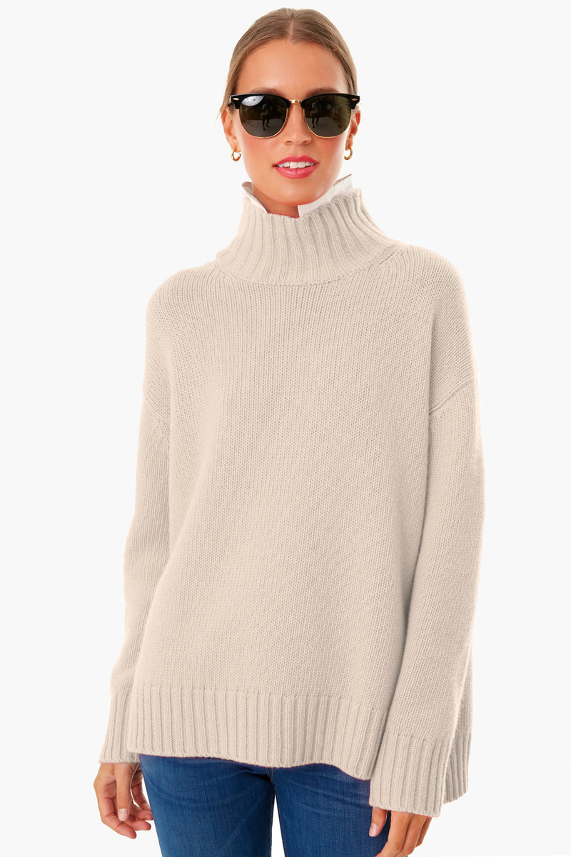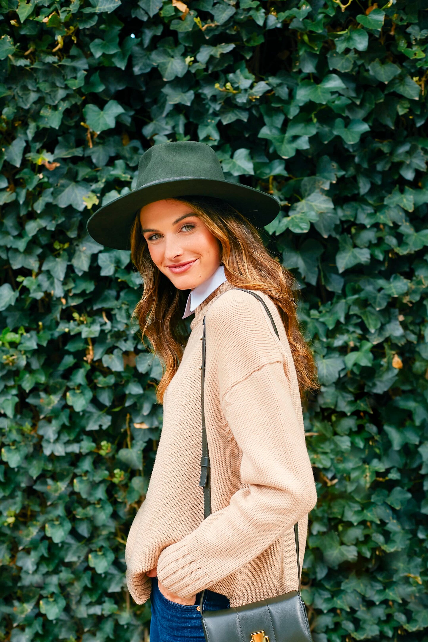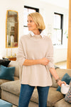 Featuring a removeable popped white dickey collar, ribbed detailing and a neutral hue, this sweater is our new favorite. From lunch with friends to work meetings, this is the perfect combination of relaxed yet classic! We are pairing this crewneck with tall boots for a look that will take you through the seasons in style.