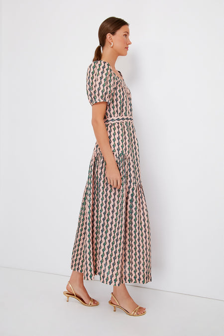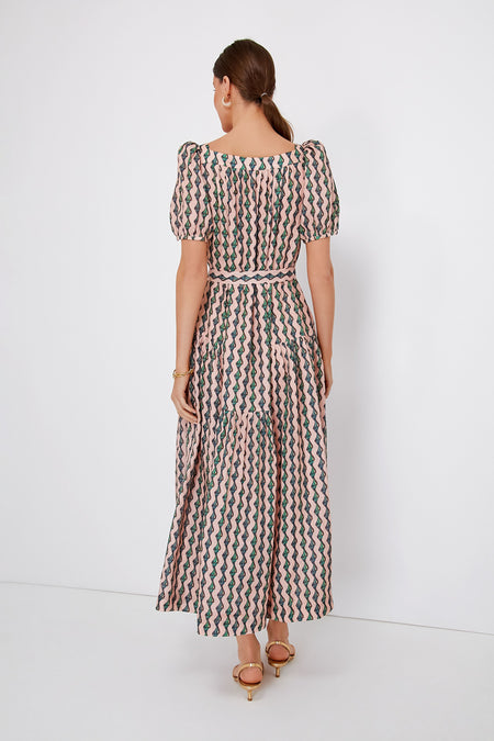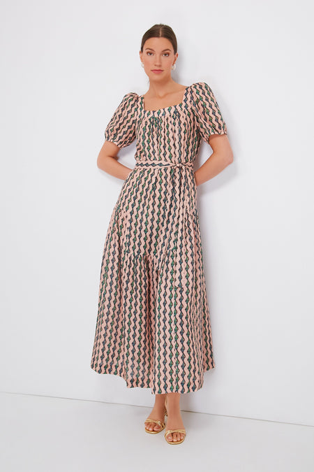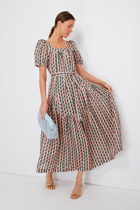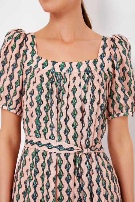 Linear ribbons of jade conch shells cascade down a soft pink linen base on the Ocean Stripe Yashi Dress. Effortless elegance is the name of the game for this maxi, with its square neckline surrounded by gathered pleats, puffed shoulders, self-tie belt, and more delicate details that seem little but add up to a whole lot. An ideal choice for the upcoming summer season, this silhouette pairs gorgeously with heels and a clutch to attend a destination wedding, or with sandals and gold jewelry for evening plans all season long.