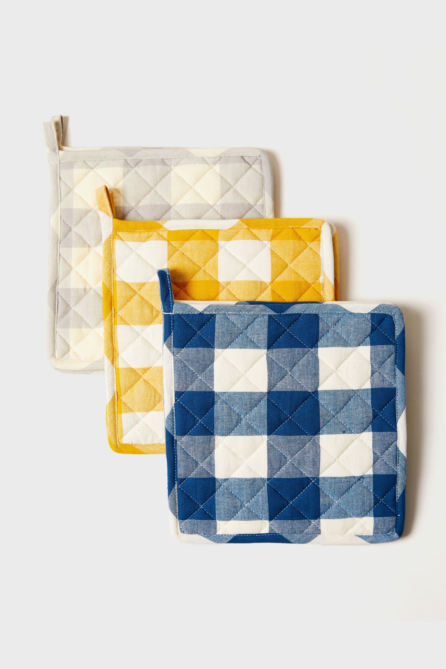 Add some farmhouse charm to your kitchen with these gingham potholders. With a rustic quilted design and plaid fabric, you are sure to use these over and over again!