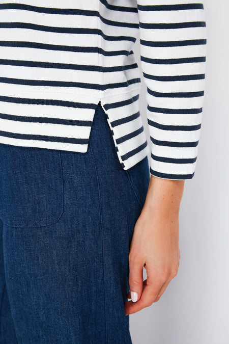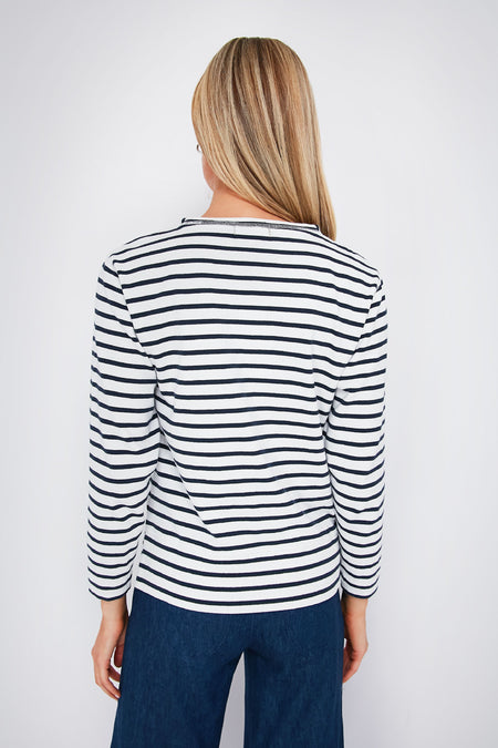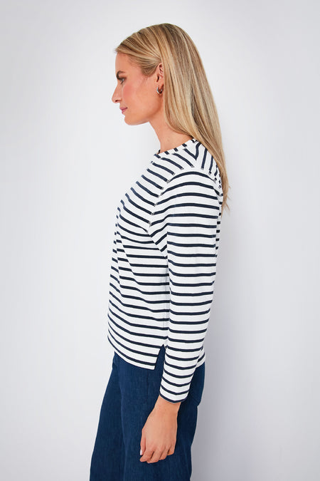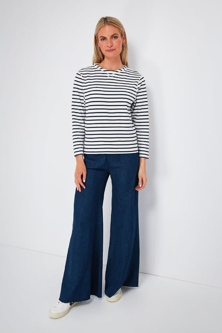 We are loving the Off White and Navy Lakeside Striped Tee lately for days where we want to be casual and comfortable, but still have some fun. With an easy fit, a crewneck, and long sleeves, this basic silhouette gets a refresh from classic stripes in go-to shades. We love to wear this with all colors of denim for a timelessly chic look, or with shorts and sandals as the weather warms up.