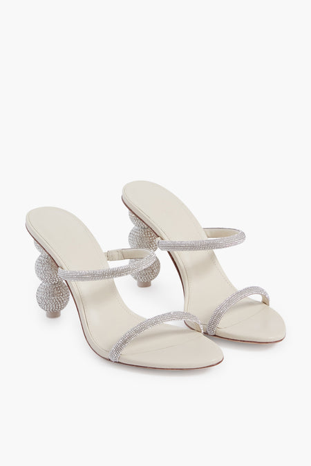 The Off White Envi Sandal is guaranteed to cause some envy. This elegant style draws the eye to its sculptural heel composed of three clear rhinestone-adorned spheres. Two dainty, functional straps cross the toe and bridge of the foot to hold you in tightly. You are set for each and every event on your social calendar this season, just pick out your party dress and get ready to turn heads!