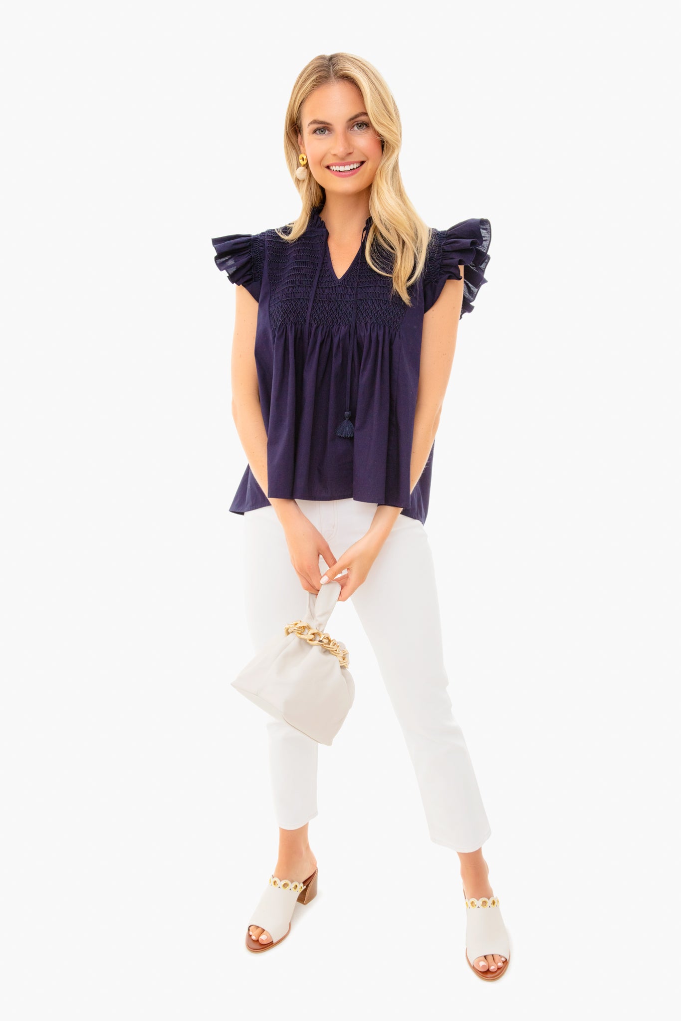 - Ruched detail at the top and handles
