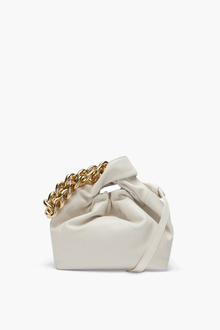 The Off White Santa Monica With Chain is made from soft leather with ruched detail at the top and handles. This petite bucket bag has a large gold chain that can be worn around the wrist. Featuring a concealed magnet closure, it can also be worn as a crossbody with its adjustable, removable strap. Eye-catching and contemporary, we are loving this style with crisp neutrals for a cool-girl look.