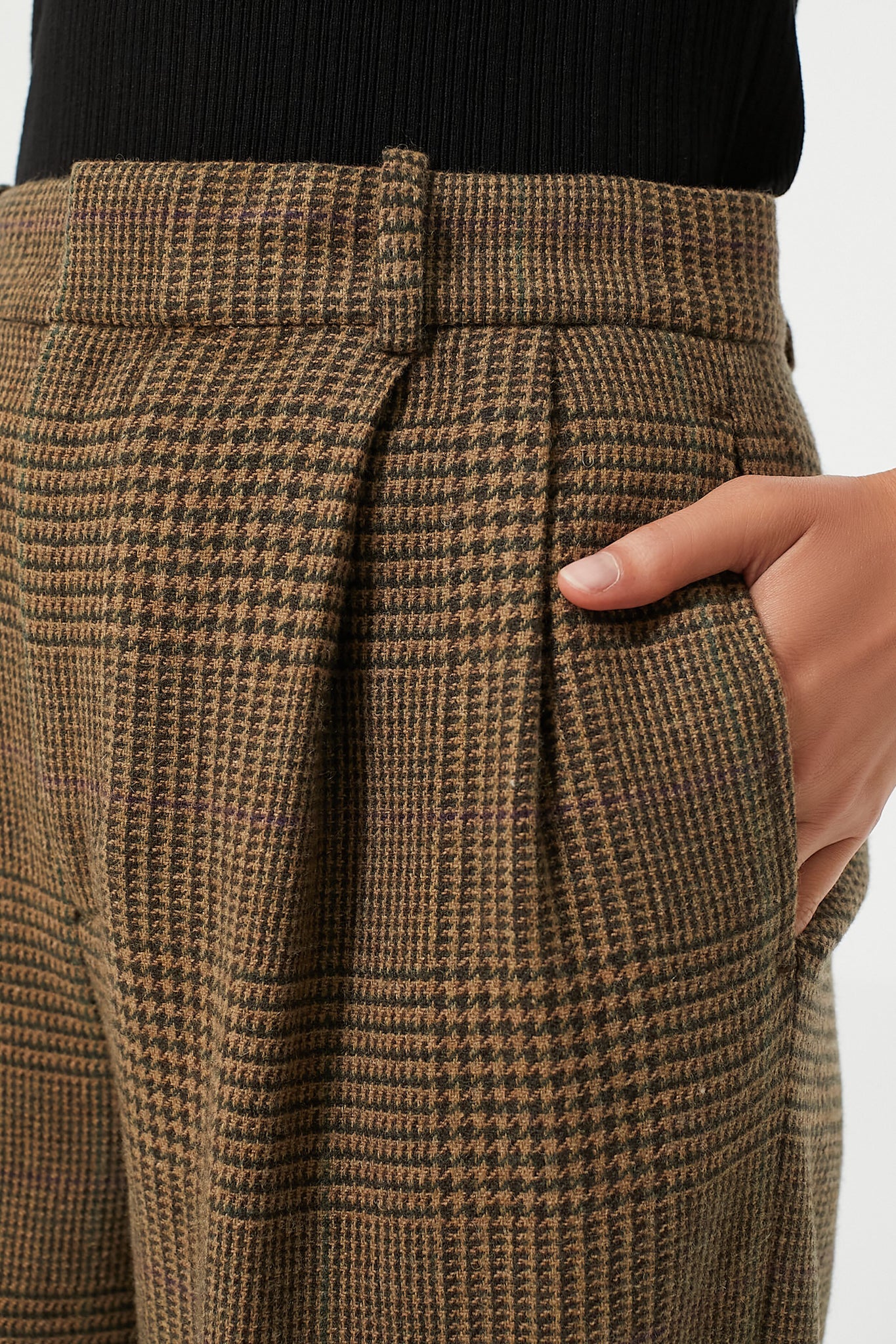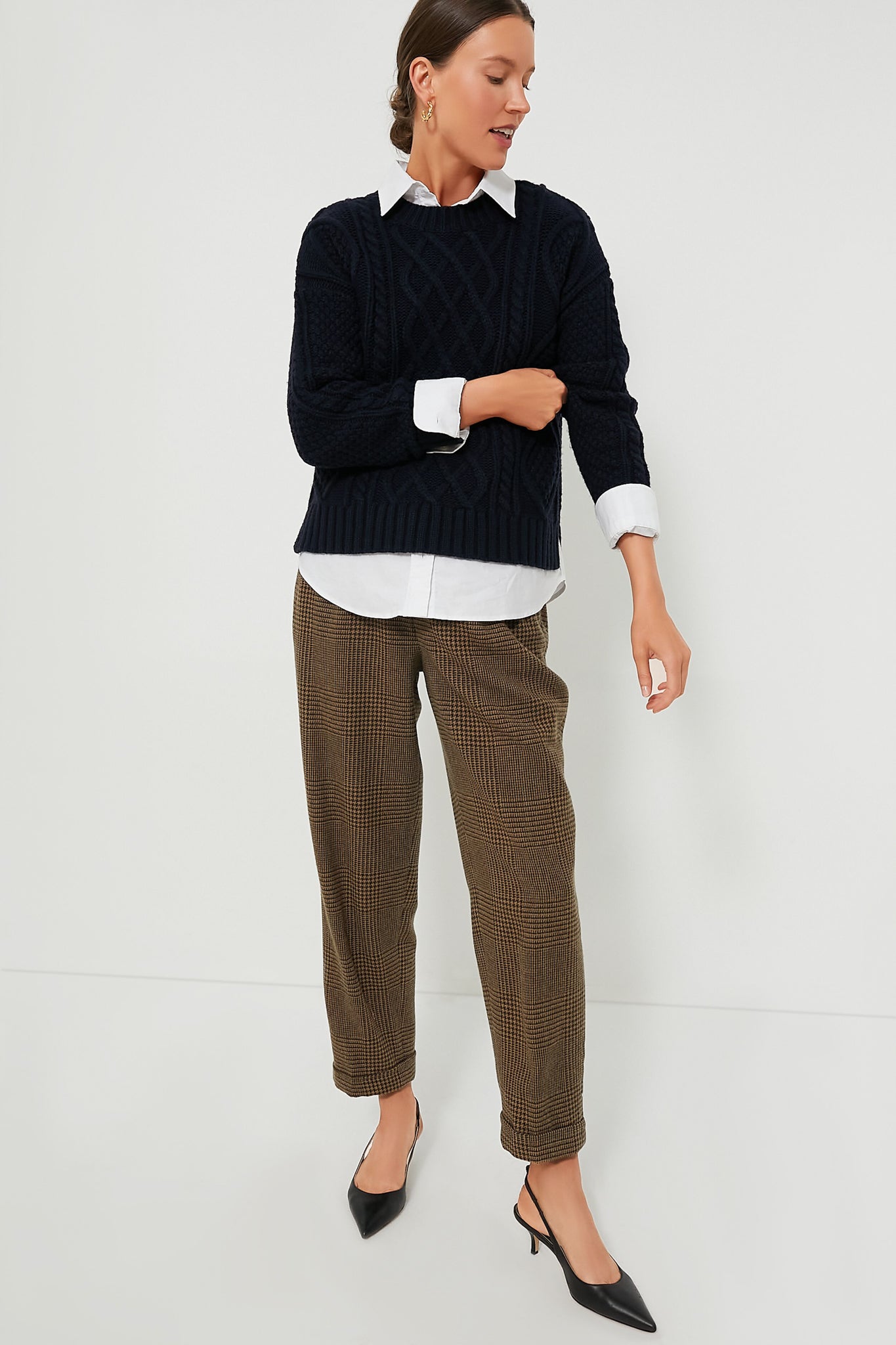 The Olive Glen CHeck Cropped Trouser is making us all eager to dress for fall! Featuring a mid-rise waist, folded cuffs, and front waist pleating, this pair of pants will be a perfect pair to have on repeat as the weather gets colder. Style with a long sleeve top and kitten heels for a transitional look to wear out of the office or throw on a chunky knit sweater and loafers for a wine tasting weekend.