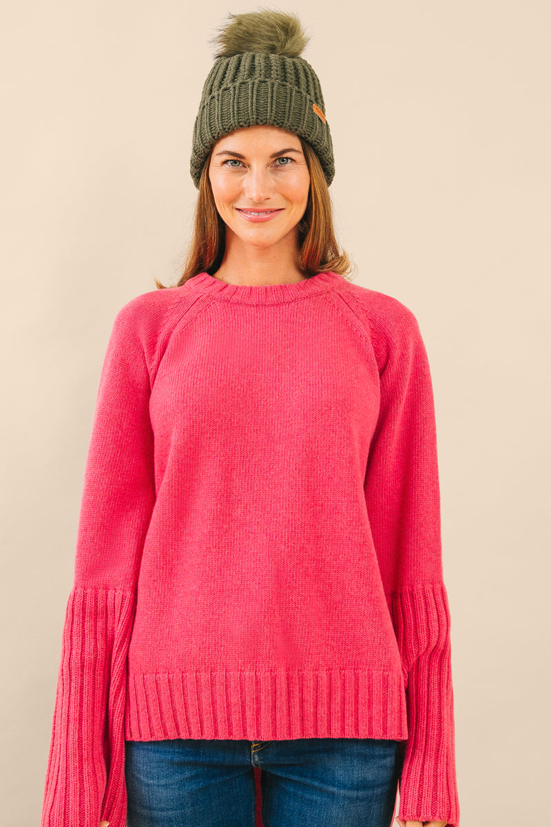 This knit hat features a luxuriously cute, faux fur pom-pom, making it one of our favorite winter essentials. Keep warm with this cozy beanie!