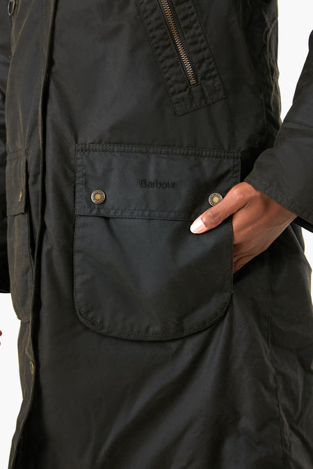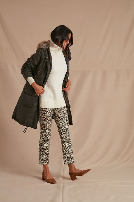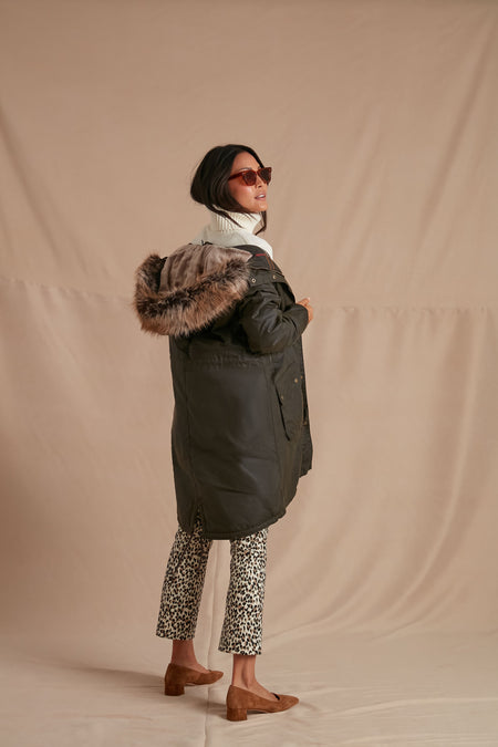 The Olive Stavia Wax is a timeless design, crafted from waxed cotton in a longer length for absolute comfort and warmth. With a luxe yet ethical faux fur trim at the hood, this jacket exudes an authentic country feel but blends it with contemporary style. Lined in a signature tartan at the body, and a sherpa lining at the hood, this is sure to become a favorite of yours when paired with chic boots and a scarf.