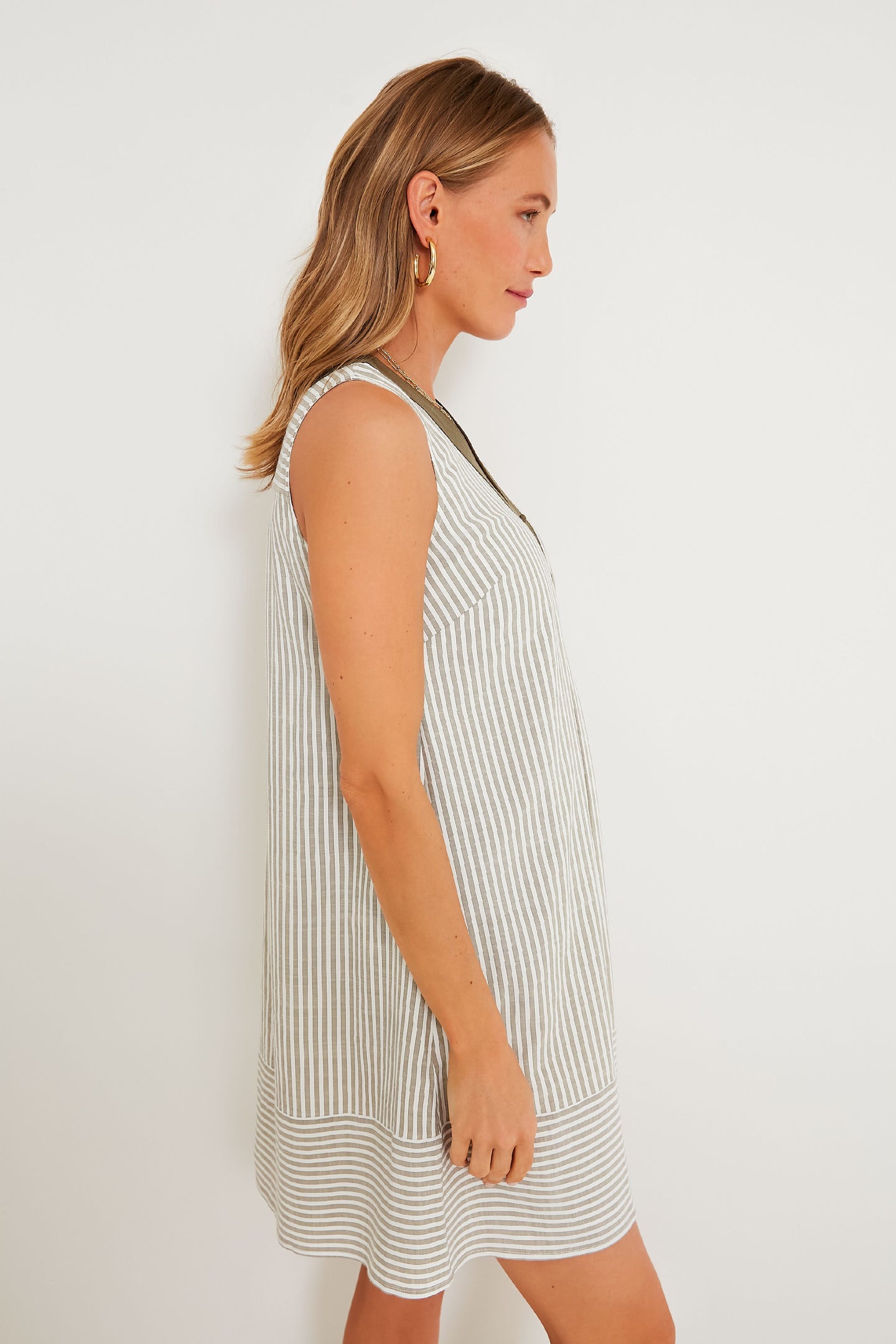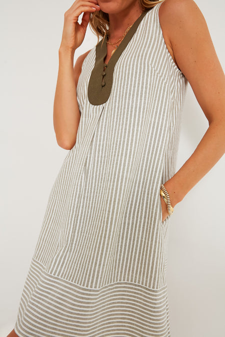 You know we love neutral stripes for summer and the Ronan Dress delivers. Designed with a plunging V-neckline that's contrasted by a thick olive green trim, the unexpected juxtaposition creates a fun and fresh warm weather silhouette. Finished with side pockets and horizontal striping at the hem, this sweet and sassy mini will create a splash whether you're heading on a coastal adventure or running errands in town.