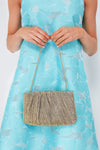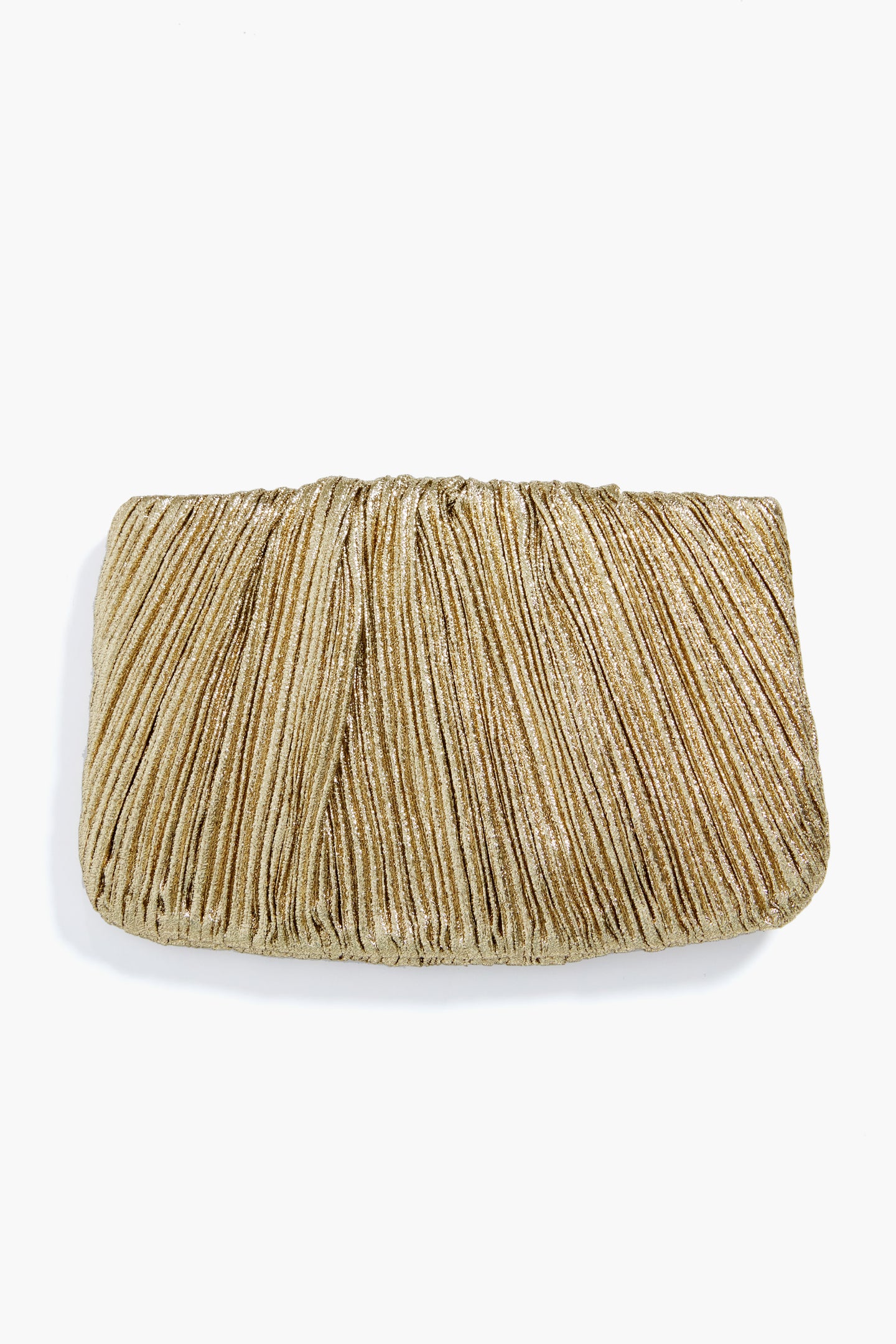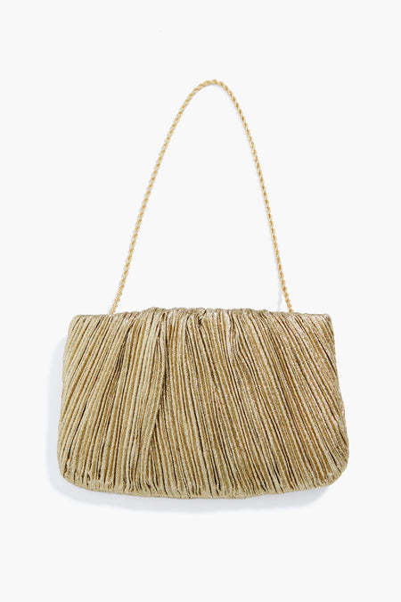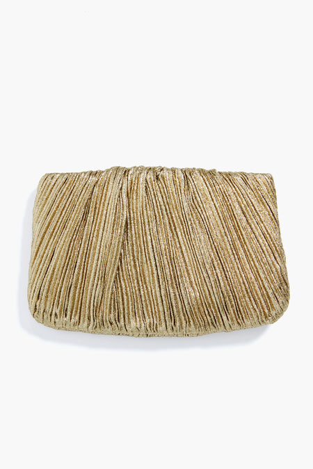 What better way to complete your look than with the Oro Brit Pleated Clutch? In a stunning Italian lamé fabric that catches the light, this delicately textured mini bag is the perfect accoutrement to any outfit, allowing you to go hands-free in style. Pair with an LBD for a party look sure to turn some heads, with a gown for glittering galas, or with denim and kitten heels for date night!