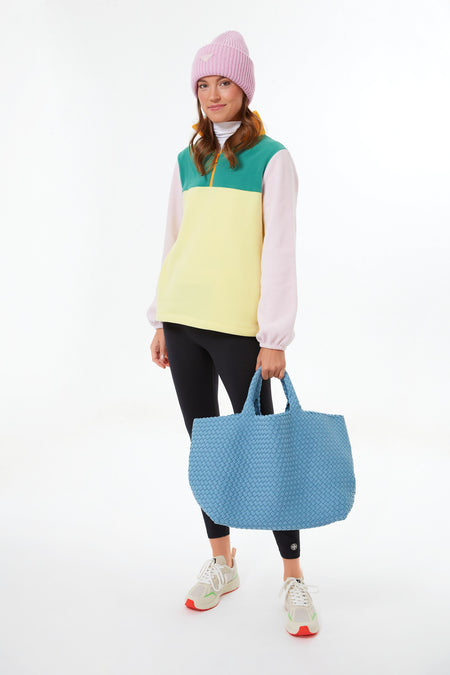 A cold-weather classic, the Oversize Baby Pink Beanie is a great way to add a pop of color to a grey winter day. A chunky, ribbed knit brings a modern twist and a merino wool composition ensures that this soft hat will keep your head warm no matter the temperature. We love to pair this with an on-trend puffer coat for that aprés ski look, or with a fleece sweatshirt to lounge around the house while you watch the snow fall outside your window.