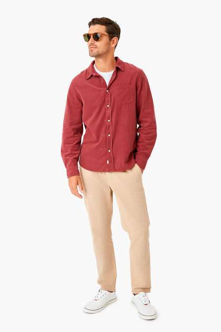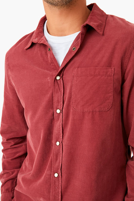 The Oxblood Red Long Sleeve Lightweight Snap Cord Shirt is a true classic. With a spread collar and snap placket to elevate this cozy style, and a corduroy finish in a deep fall hue, this is an easy style to wear all season long. Wear this super-soft layer over a tee, henley, or on its own for a closet staple you will never want to get rid of.