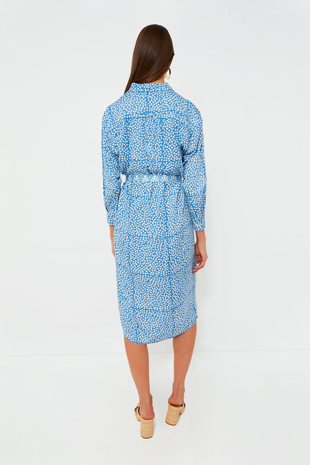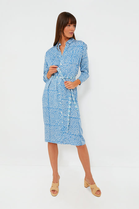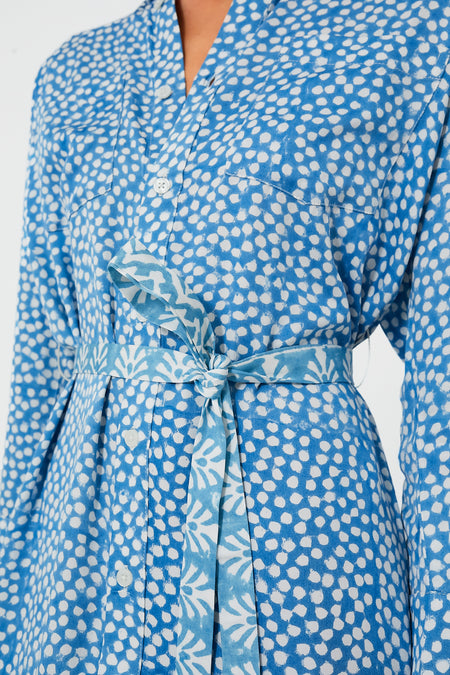 Subtle in silhouette, with a fun print, the Painterly Dots Blue Ry Shirtdress is a stellar statement-maker! It boasts an elegantly structured shirt collar, bracelet length sleeves and a removable matching waist belt that allows you to create a cinched silhouette! Pair with heels and gold jewelry for luncheons with your ladies, or with a clutch and statement earrings for a night out on the town.