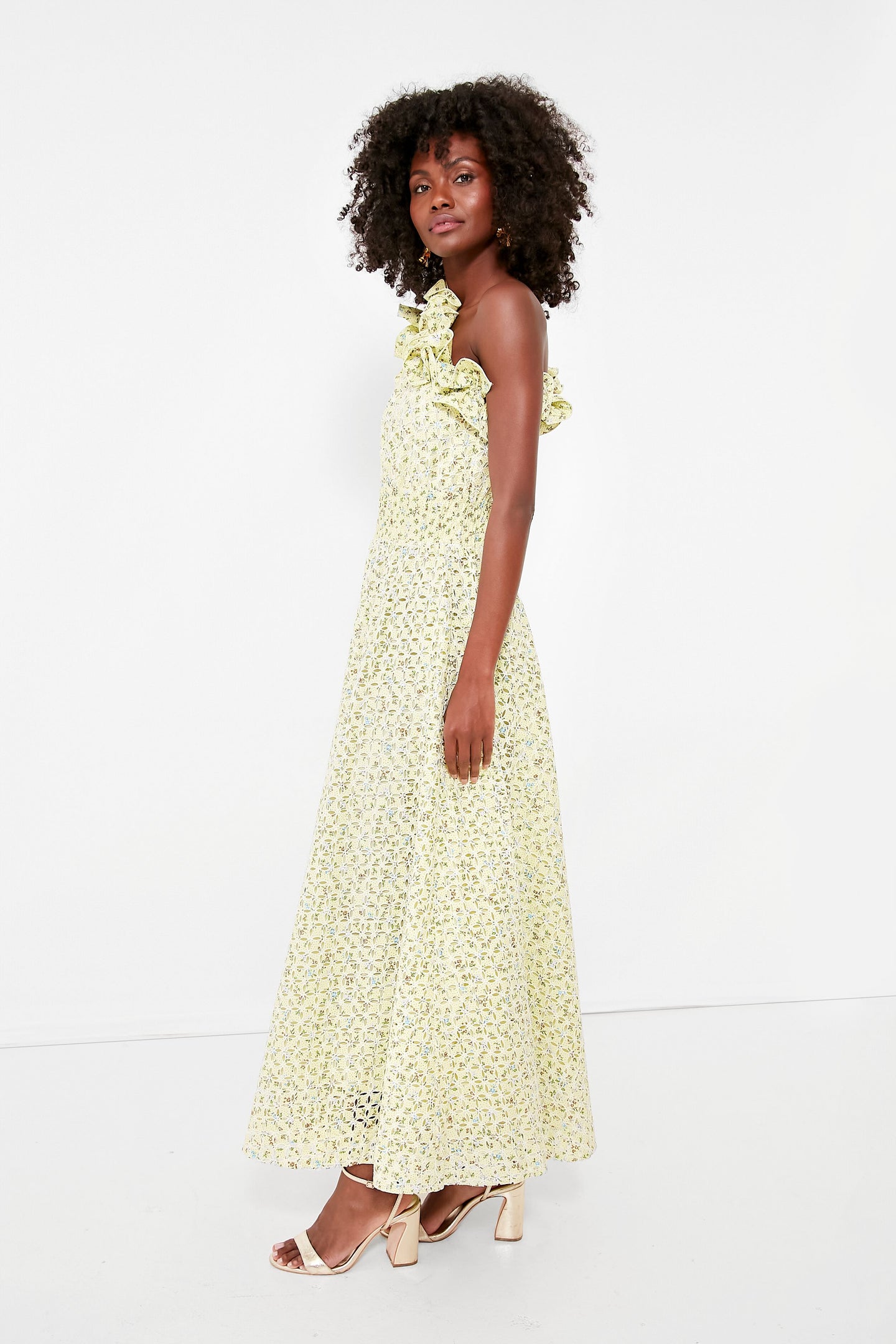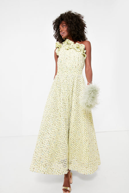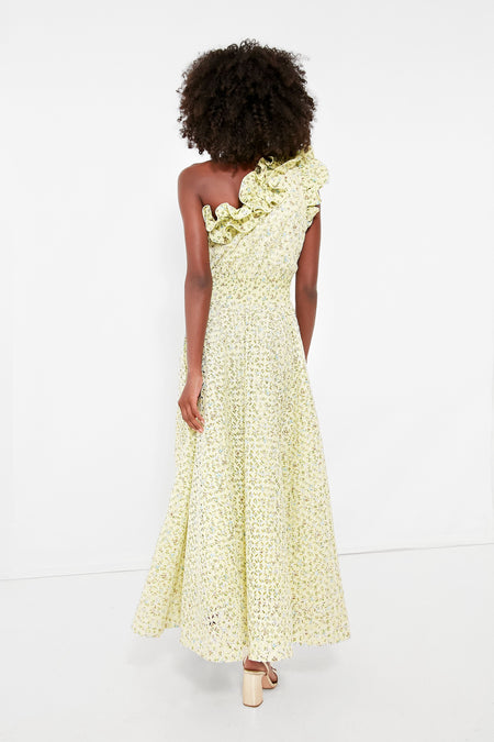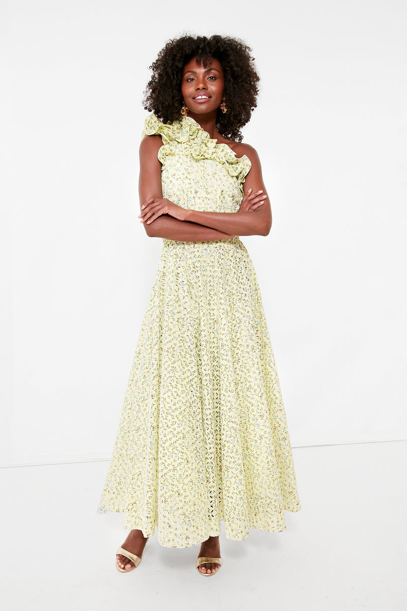 An adorable and attention-grabbing maxi for any warm-weather occasion, the Pale Mint Maeve Dress is a must-have! Made from airy organic cotton with stunningly intricate broderie anglaise cutouts all over, this silhouette features an asymmetrical neckline with ruffle trim for some playful volume, and a smocked waist that helps you achieve a perfect fit. Sweet yet special, you'll reach for this to attend outdoor weddings, vacations, and celebrations — just add heels and some earrings for a simple yet super-stylish look.