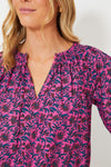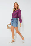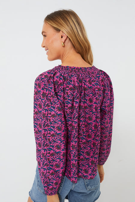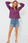 Crafted from a super soft blend of cotton and silk, you will not want to take the Palm Floral Fuchsia Esparta Top off. With a relaxed silhouette, subtle puff sleeves, and a gorgeous purple and blue floral pattern, this is a perfect top for the office, lunch dates, or weekend trips to the farmers market. Pair with a denim mini skirt or pants and ballet flats or sneakers- we love the versatility of this blouse!