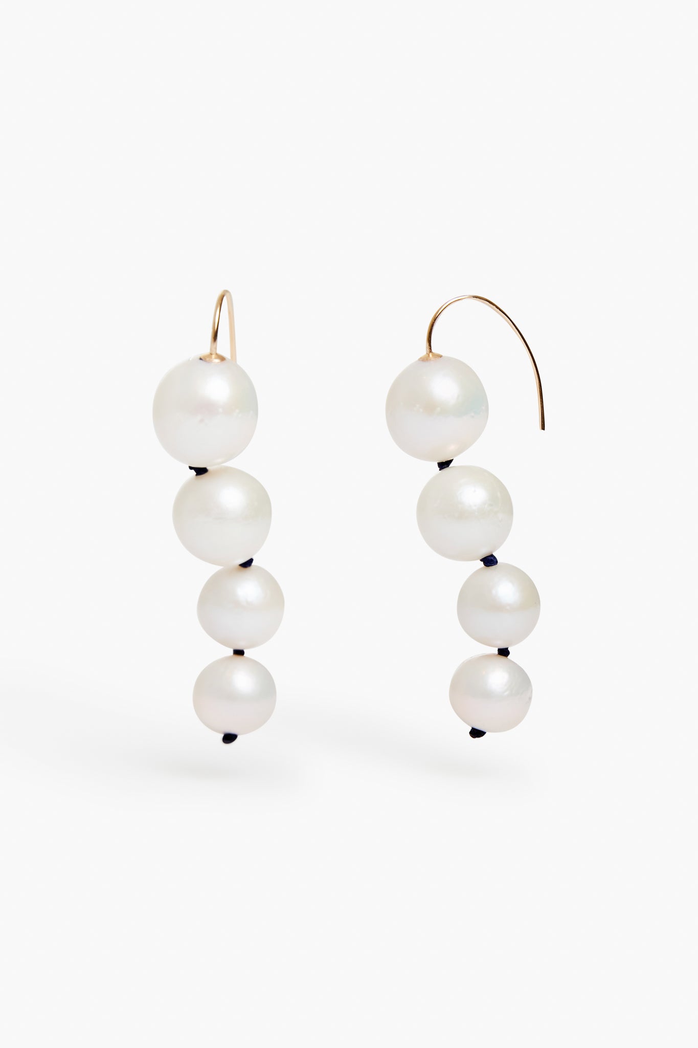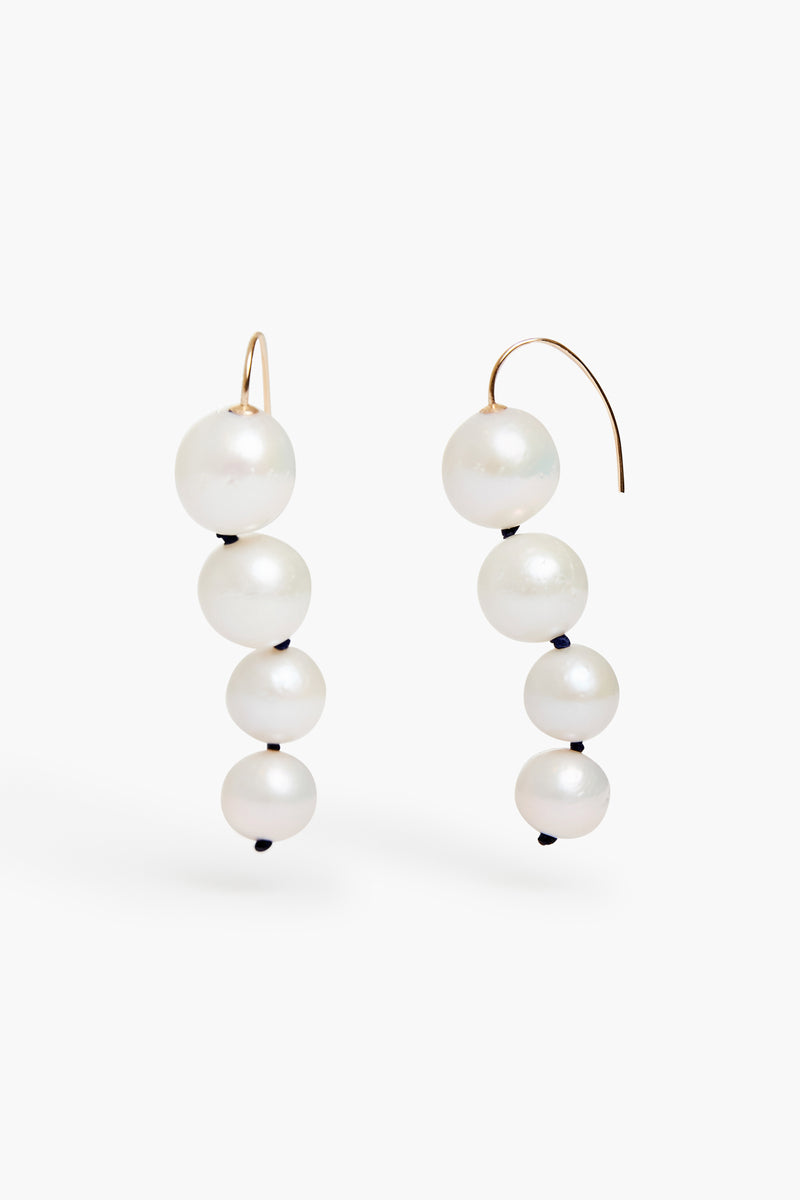 The Pearl Marguerite Earrings are crafted in a tapered hanging style. Made from gold-fill wire with freshwater pearls, these add throw-on-and-go elegance to sweaters and day dresses!