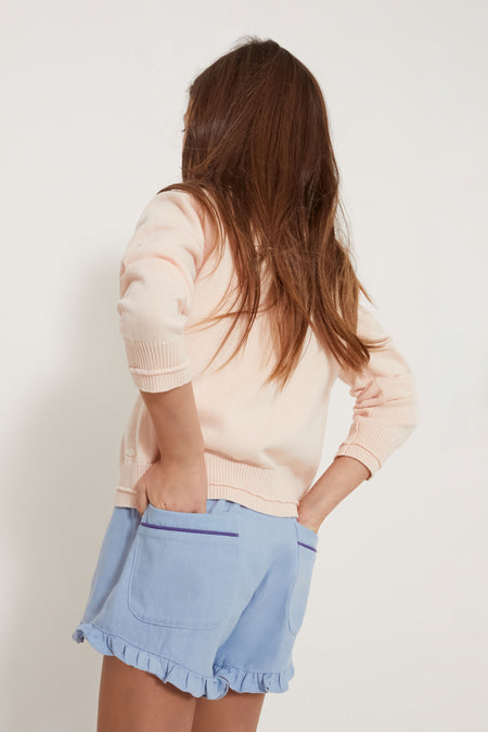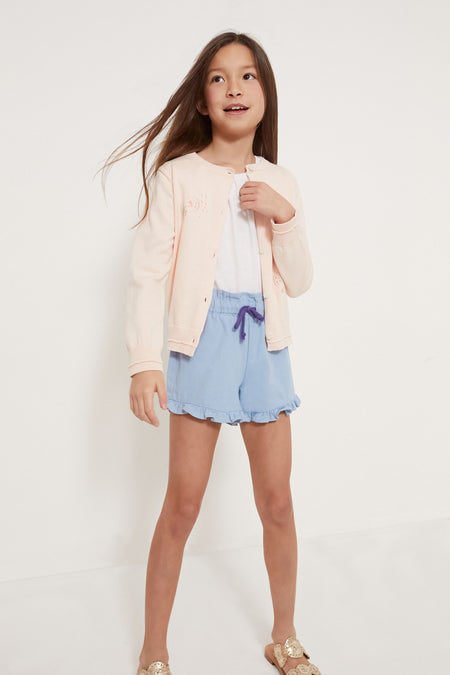 The Peche Cardigan is an essential layering piece this season! This cotton number is oh so soft and has some stretch, ensuring you're little one won't be itching to take it off. We especially love the pretty embroidery that adds a elegant touch and is ideal for all occasions: spring walks, summer evenings, weddings, baptisms, birthdays and more.