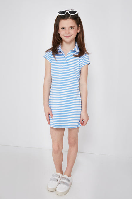 The Periwinkle and White Girls Polo Dress is the most charming number for your little one! This mini is cut from performance fabric and is made for movement. Perfect for school, play dates, and summer adventures, you'll be sure to get maximum wear out of this mini.