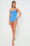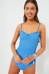The Periwinkle Brice Solid Smocked One Piece features flattering smocking throughout, ruffle trim along the neckline, and adjustable self-tie shoulder straps to create the perfect swim suit. Comfortable, eye-catching, and feminine, this style is sure to be your go-to all season long.