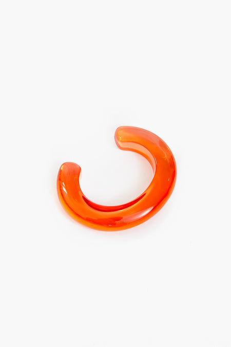 Twin sisters Lizzie and Kathryn Fortunato founded their brand with the intent of creating unique accessories that use unexpected materials and champion handicrafts from a breadth of places and cultures. The Persimmon Ridge Cuff is an orange-red, thin acrylic domed bracelet. Stack multiple cuffs for a unique pop with denim and a basic tee!