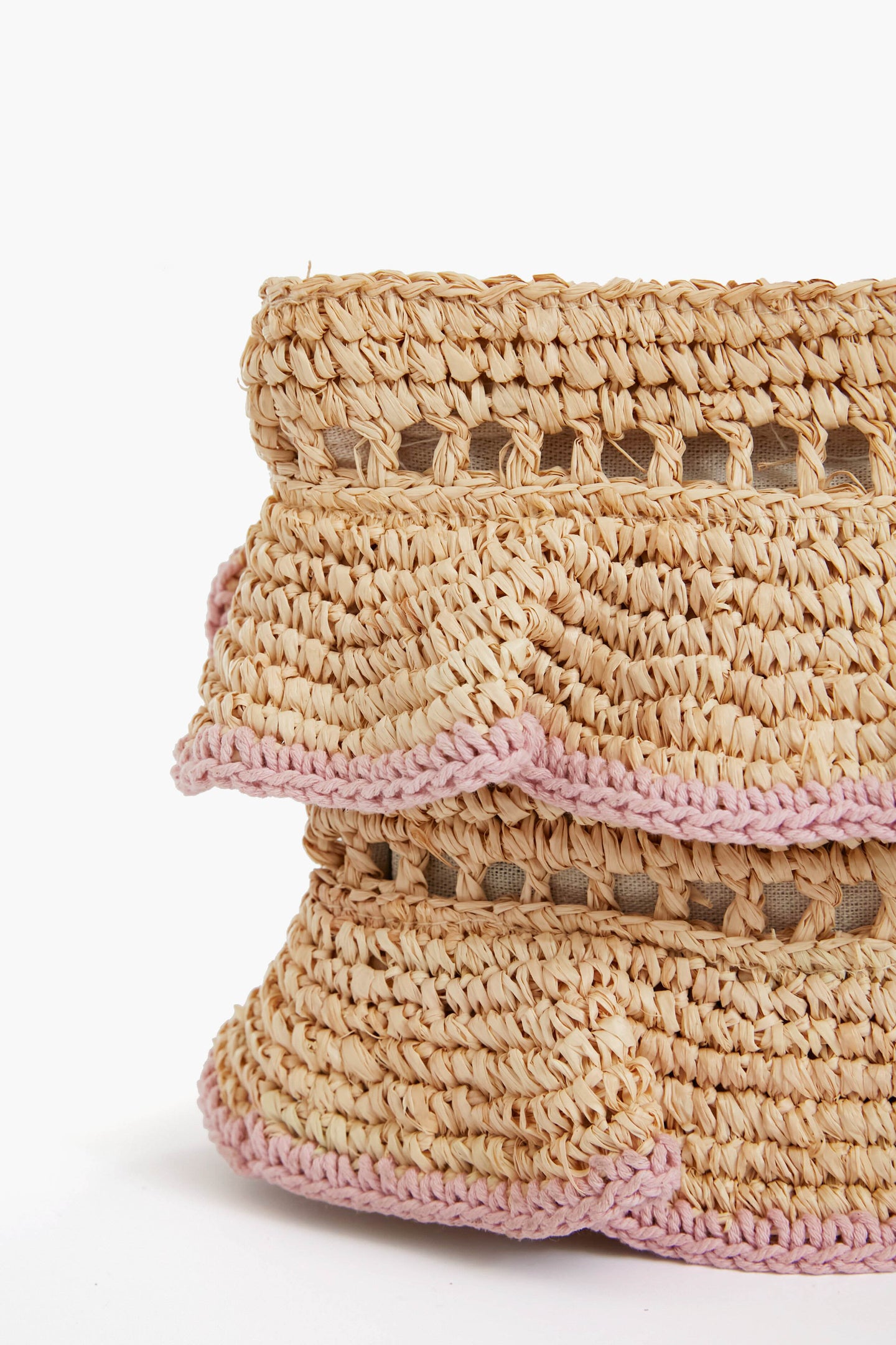 The Petal Joey Clutch will be a unique addition to your bag collection. A major accent piece, this style will tie any outfit together for day or evening. The ruffle details add feminine intrigue to any look, which can be complemented with a sundress and other raffia accessories.