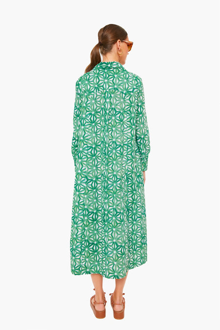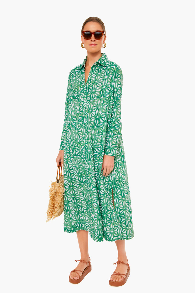 The Petra Green Rosario Dress features a cheerful vibrant print in a breezy A-line midi silhouette. With a collared neckline, button front placket, long sleeves, and slits at the sides, this is a comfortable and fun transitional style. Grab your sandals and gold jewelry for a chic day on the town!
