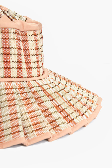 The Petra Island Capri Hat features white and brown colored thread woven horizontally through the striped sections of natural and tan hand-dyed grass fibers with toffee fabric trim. This hat combines style and sun-safety with certified UPF 50+ protection and optional ties to keep it in place during beach breezes. This piece can be easily folded, making it perfect for your many adventures- just add a caftan and sandals!