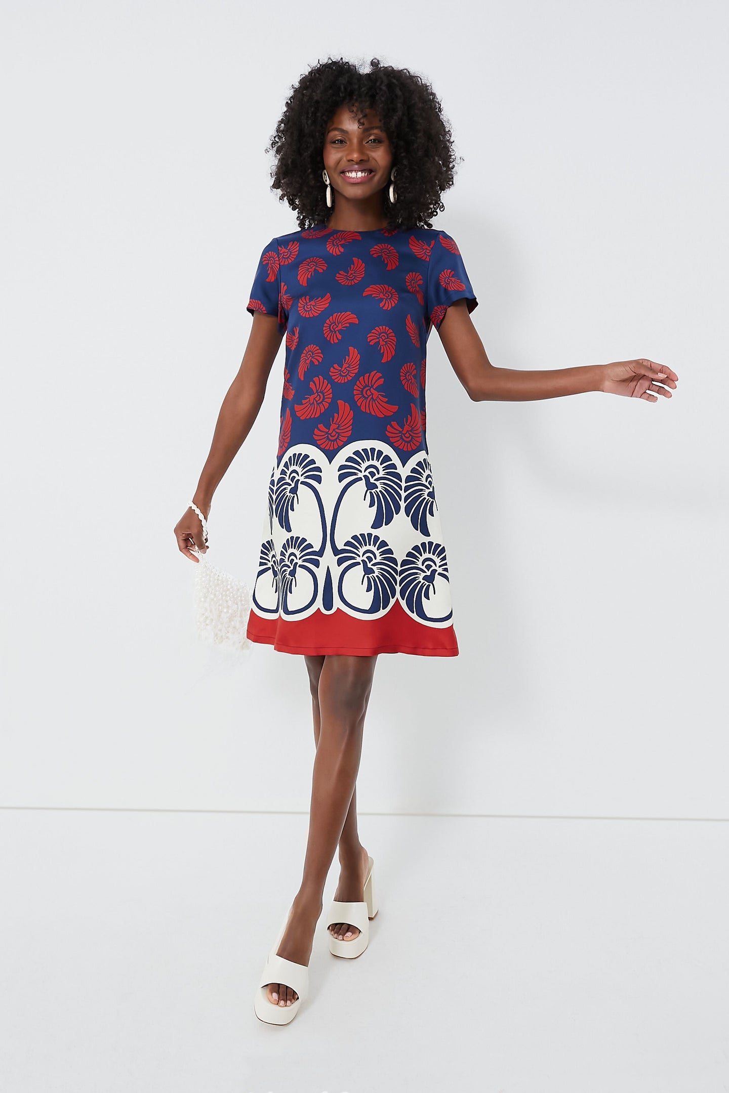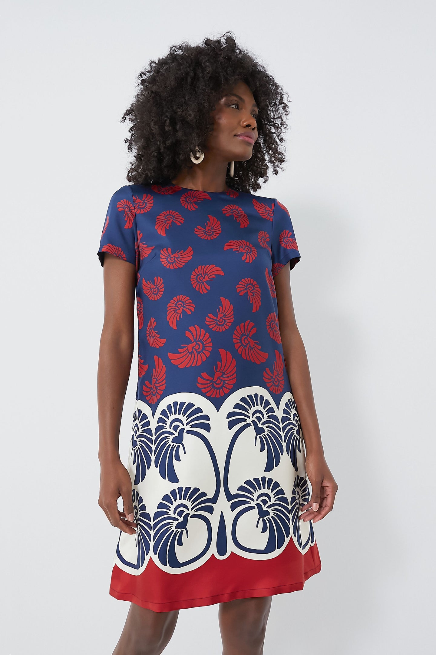 A T-shirt dress with a fun twist? Say less! The Palmetto Palm Mini is beautifully crafted from a glossy silk twill fabric and features short sleeves, side seam pockets, and an easy, breezy A-line silhouette. Swing into the weekend with this versatile style that is perfect for daytime styling or event dressing — you can pair this stunner with white sneakers, gold jewelry, and a tote for brunches with your besties, or dress it up with wedge espadrilles and statement earrings for cocktail parties. No matter your plans, this chic look has you covered.