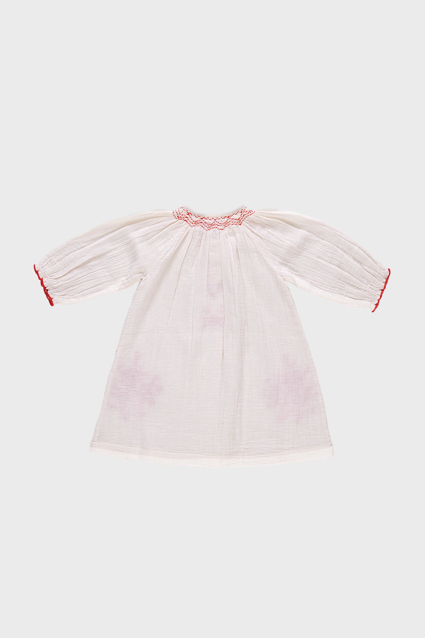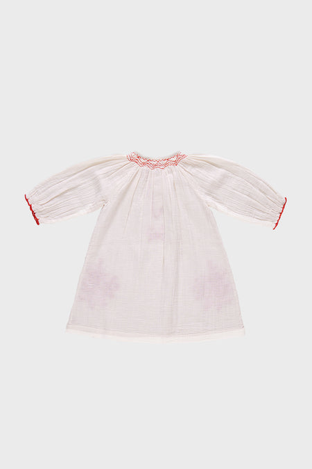 The Pink and Orange Ava Dress features strawberry cream embroidery, for a boho chic vibe. This versatile frock includes gathered sleeves and a subtle v-neck. Pair with a sandal or a comfy sneaker for a perfect school day or weekend look.