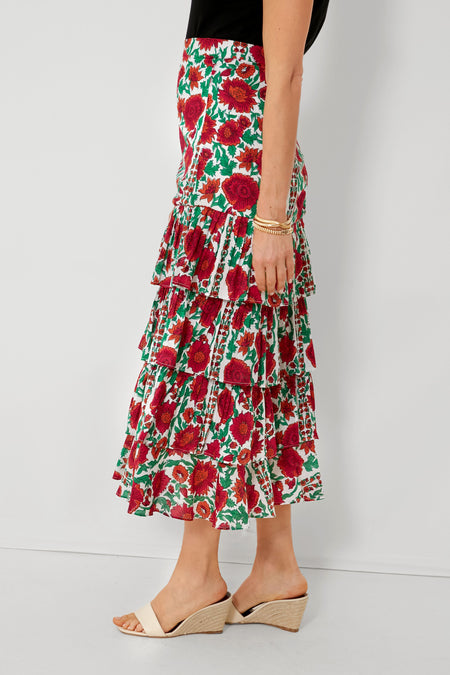 Just in– an easy yet dramatic summer skirt that goes anywhere, with anything, meet the Pink Dijon Honduras Maxi. Designed with a high rise silhouette and cascading pleated ruffles that are just begging to be twirled, this romantic style is ready to make an entrance. From afternoon happy hours to dinner out followed by dancing, we love the striking effect of this stunner.