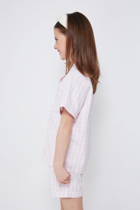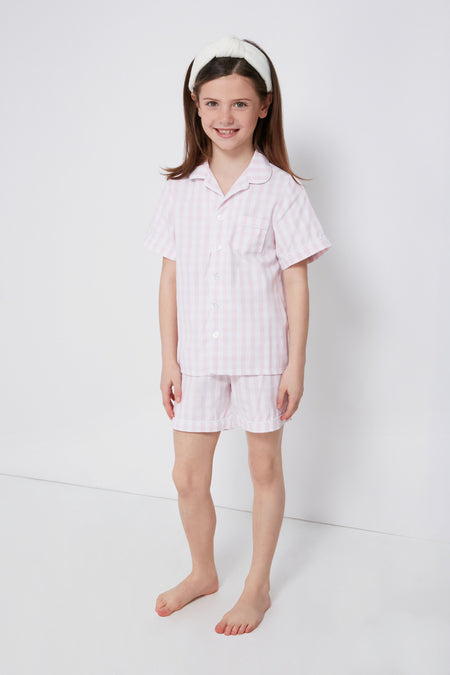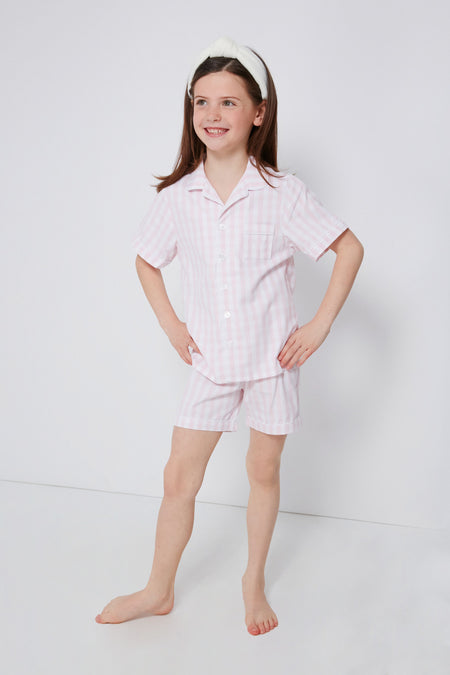 A springtime essential, the Pink Gingham Short Set is the most darling sleepwear. In a classic print and finished with pearl buttons, this set is made from the finest quality cotton and the fabric is brushed for added softness, getting cozier after each wash. Tuck your little one in with love and send them off to dreamland with these PJs!