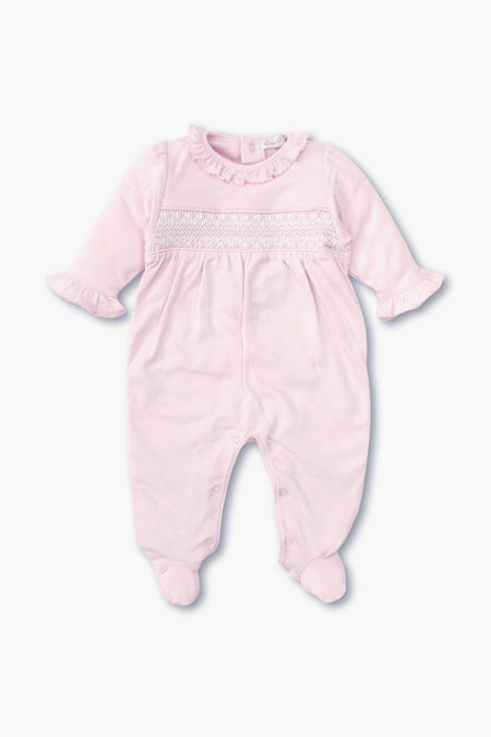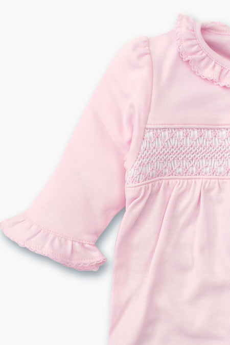 The softest, coziest style we've seen in a while, the Pink Hand Smocked Footie is crafted from the finest Peruvian cotton. With delicate hand detailing and a timeless design with sweet ruffle details, your little one will be oh-so-comfy when they are dressed in this — and you will love how low maintenance and easy it is to wash it is.