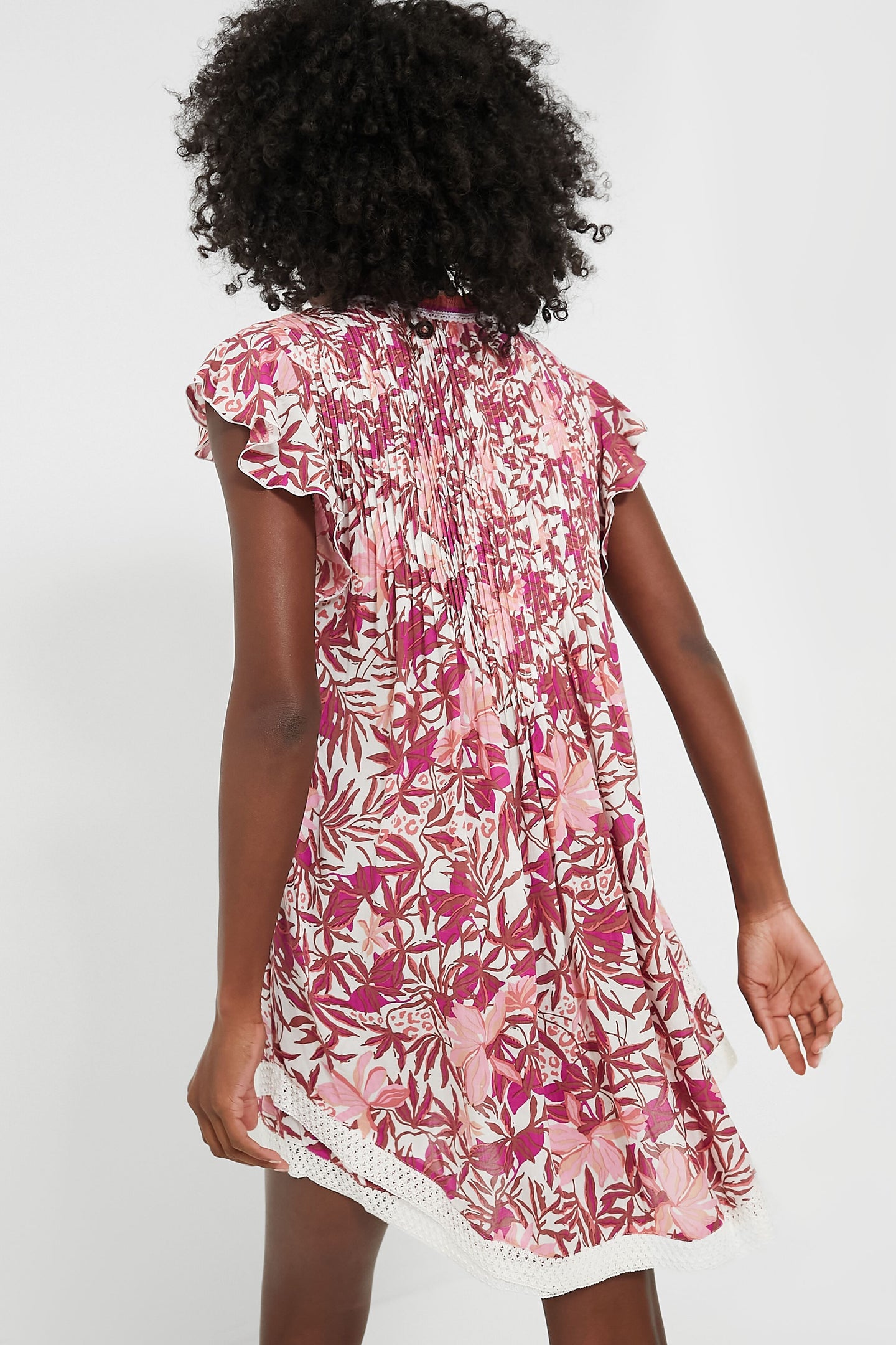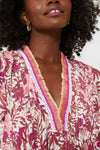 The Pink Orchid Sasha Mini Dress is a Poupette St Barth classic with a vibrant fringed collar, flowing sleeves and lace trimmed at the hem. It's trapeze shape can be adjusted with a belt for a refined look. Ideal for a carefree cool style at the beach!