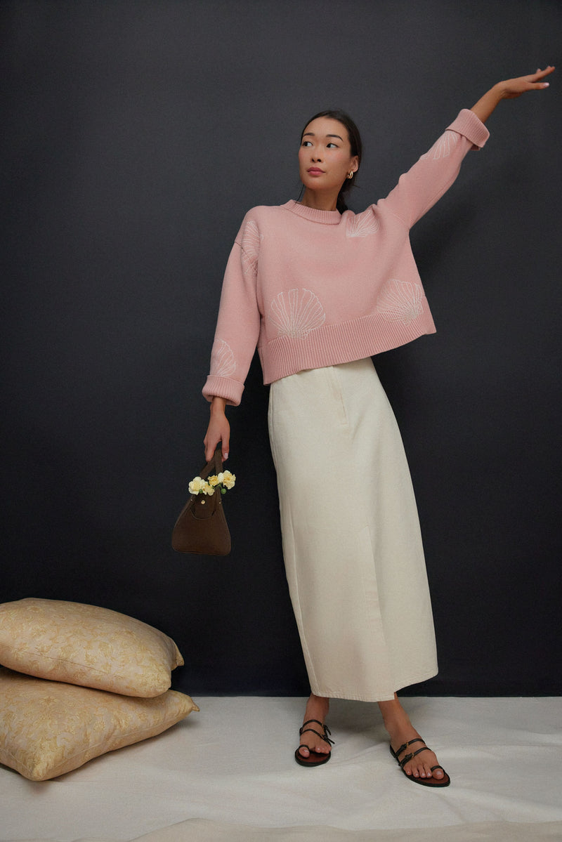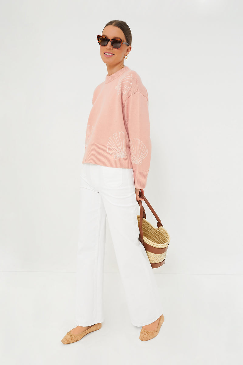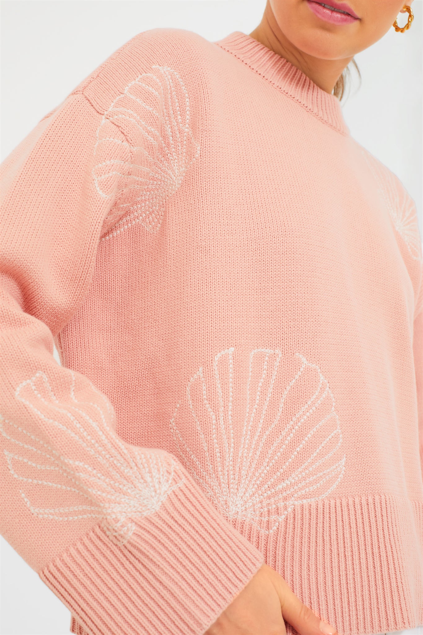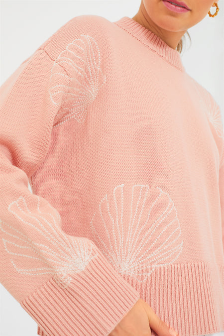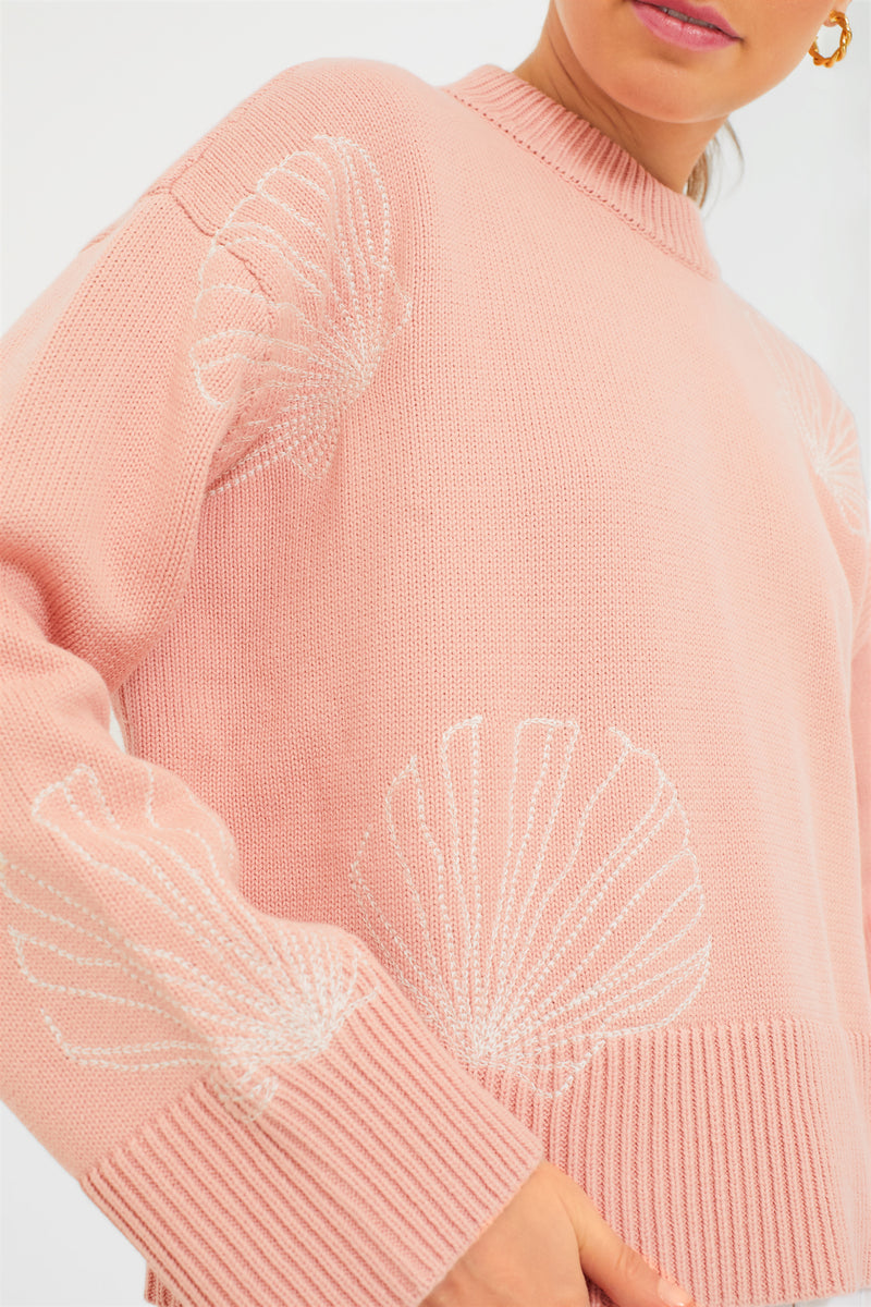 Whether you're heading out to a beach or staying in and cuddling up, celebrate the spring with the Pink Seashells Camille Sweater. Subtle details go a long way on this comfortable yet chic style — crew neck, long sleeves with ribbed cuffs, and the embroidered shells all over give it an extra special touch you're sure to love. Wear it with neutral denim and sandals for a cozy yet stylish everyday look, or draping over your shoulders when the temperature heats up.