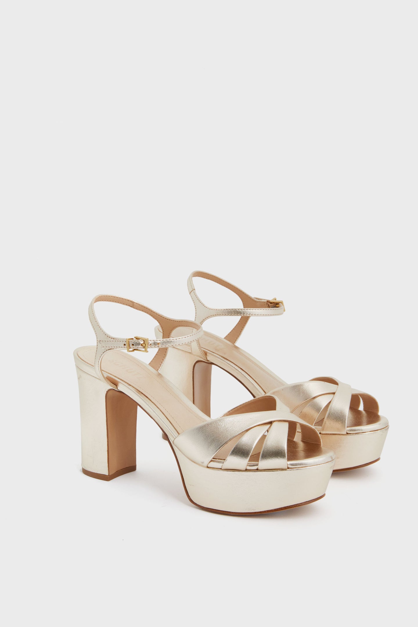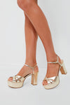 - Adjustable ankle strap with gold buckle