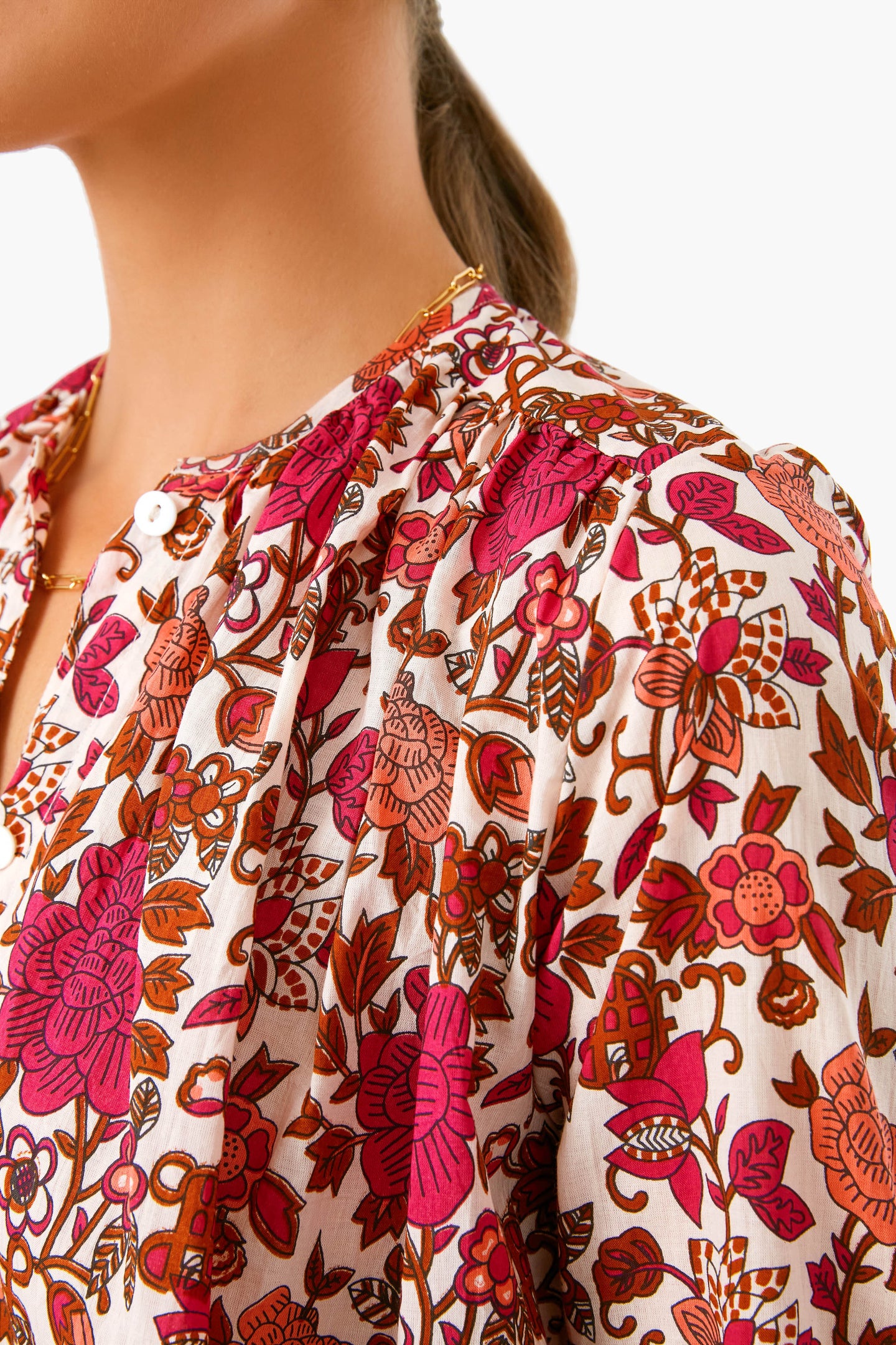 The Pondicherry Florian Top is our go-to for effortless dressing. In a button up style, minus the collar, with a full, flowing body designed for tucking to create a blouse look, this top is perfect for desk to drinks moments. We love wearing this with trousers or denim, flats or heels, and gold accessories for a chic, vacation ready look.