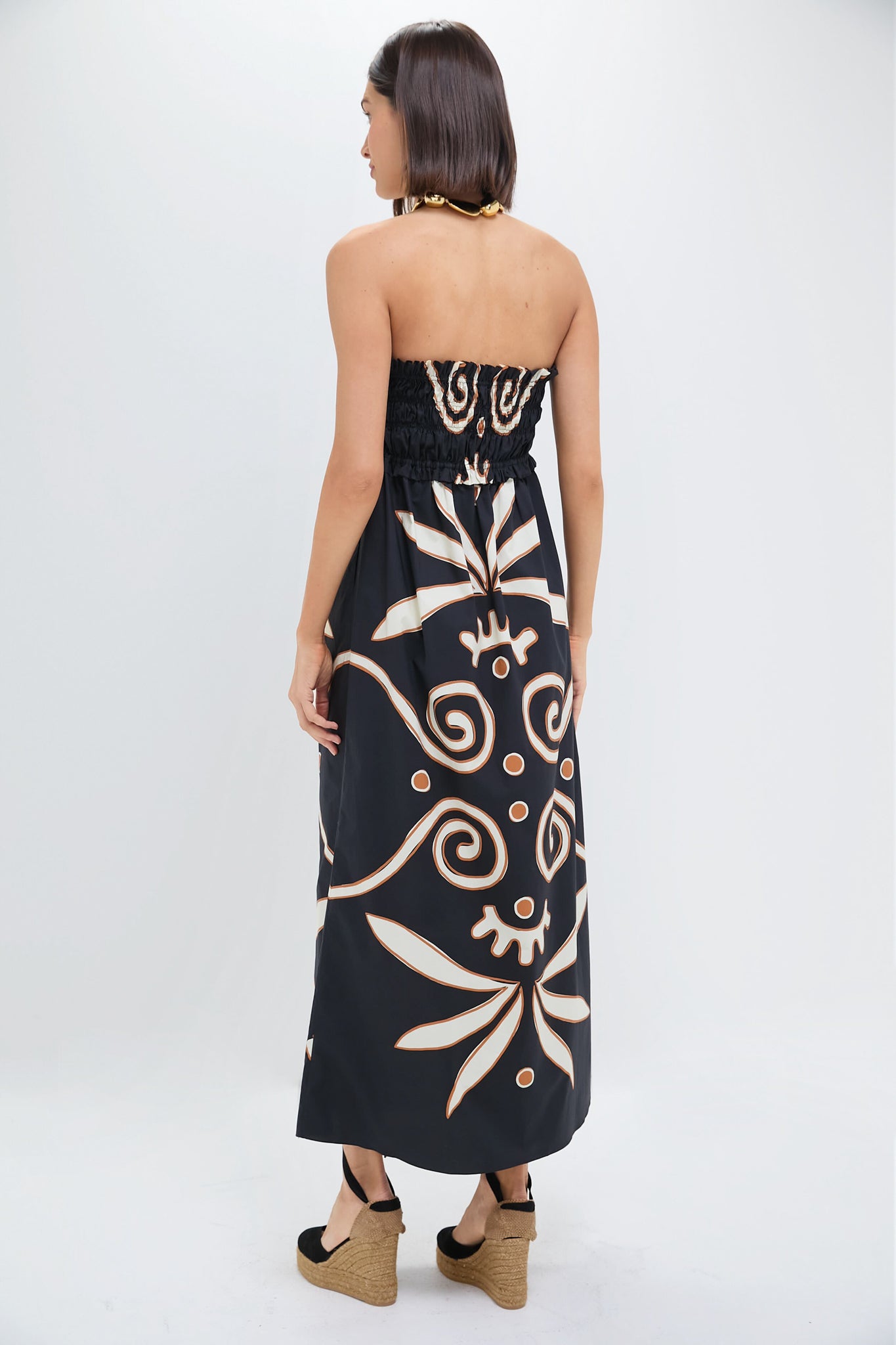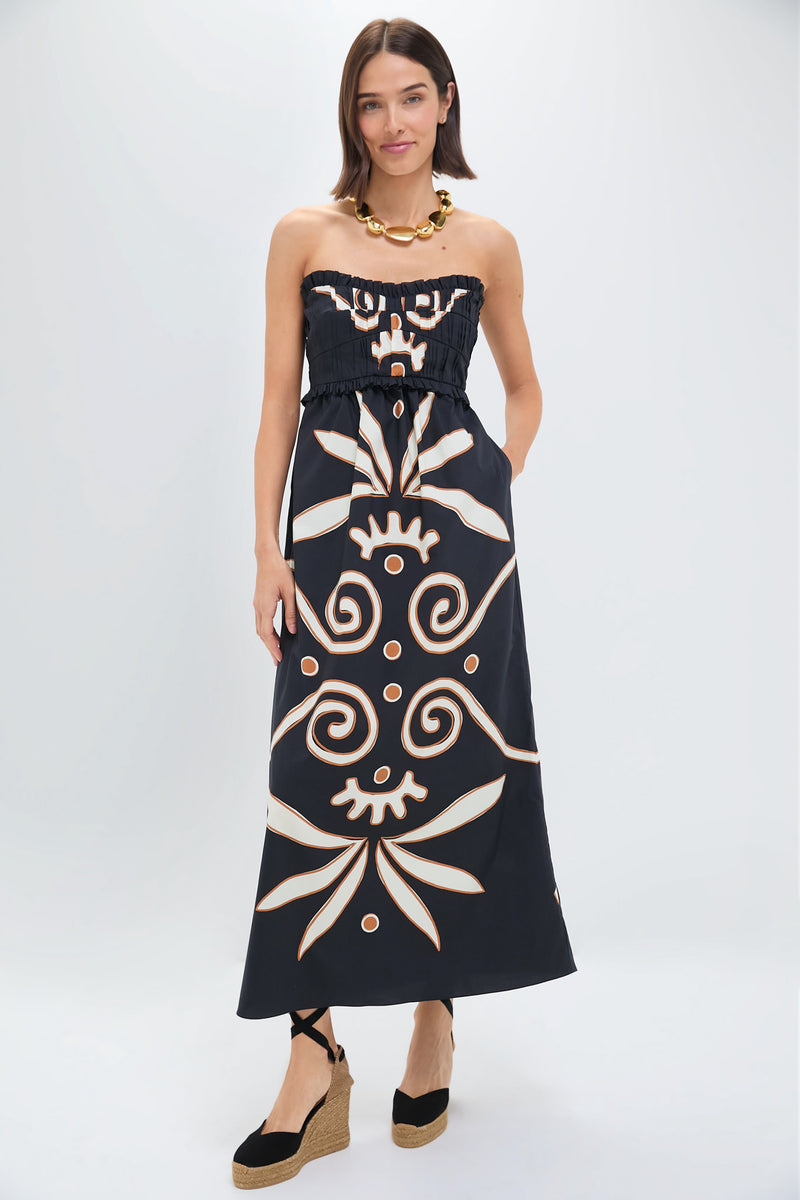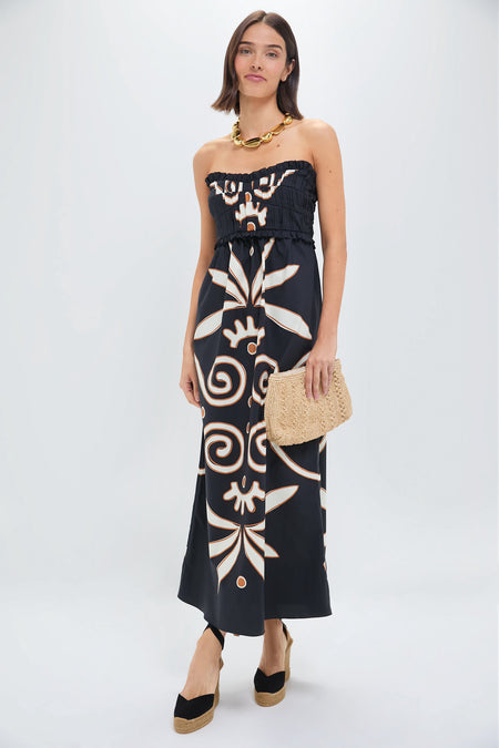 Up your dress game with the eye-catching Lucena Dress. This midi silhouette features a soft sweetheart neckline, a smocked and ruffled bodice, and removable, adjustable spaghetti straps. Pair with sandals or wedges, a statement necklace, and clutch for your next vacation!