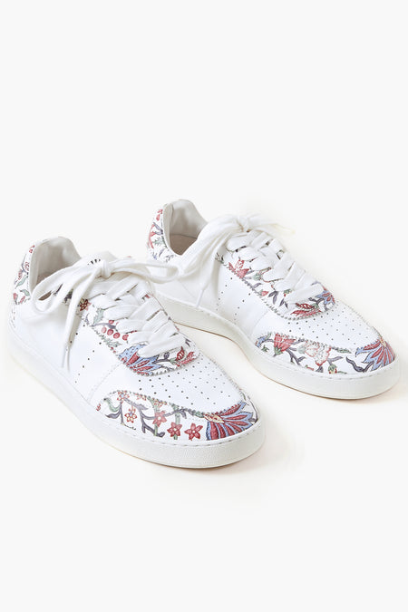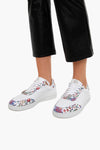 The perfect mix of feminine and modern details, the Provencial Keeley Sneakers have a beautiful sketched floral motif on white leather. Featuring a padded footbed for ultimate comfort, organic cotton laces, and a recycled rubber outsole, these shoes are a unique and special find. Pair with a chunky knit for the cooler months and a tee as the days begin to warm up!