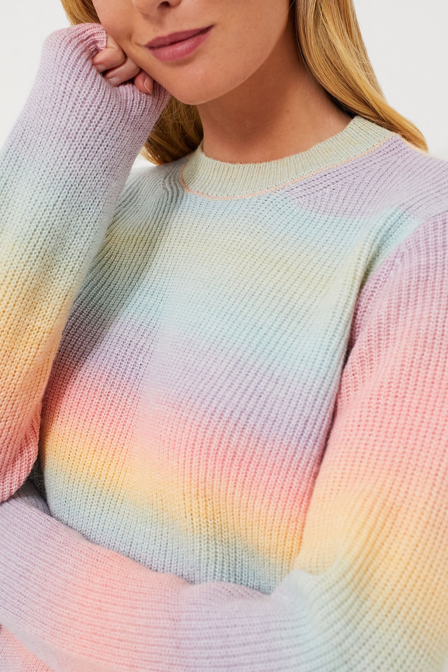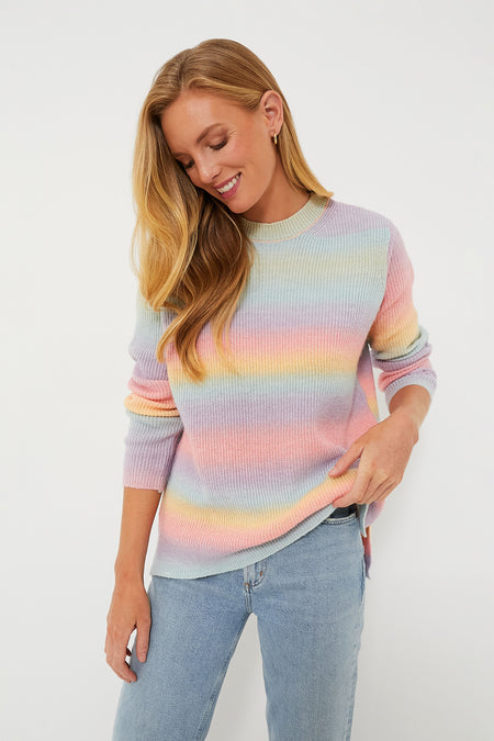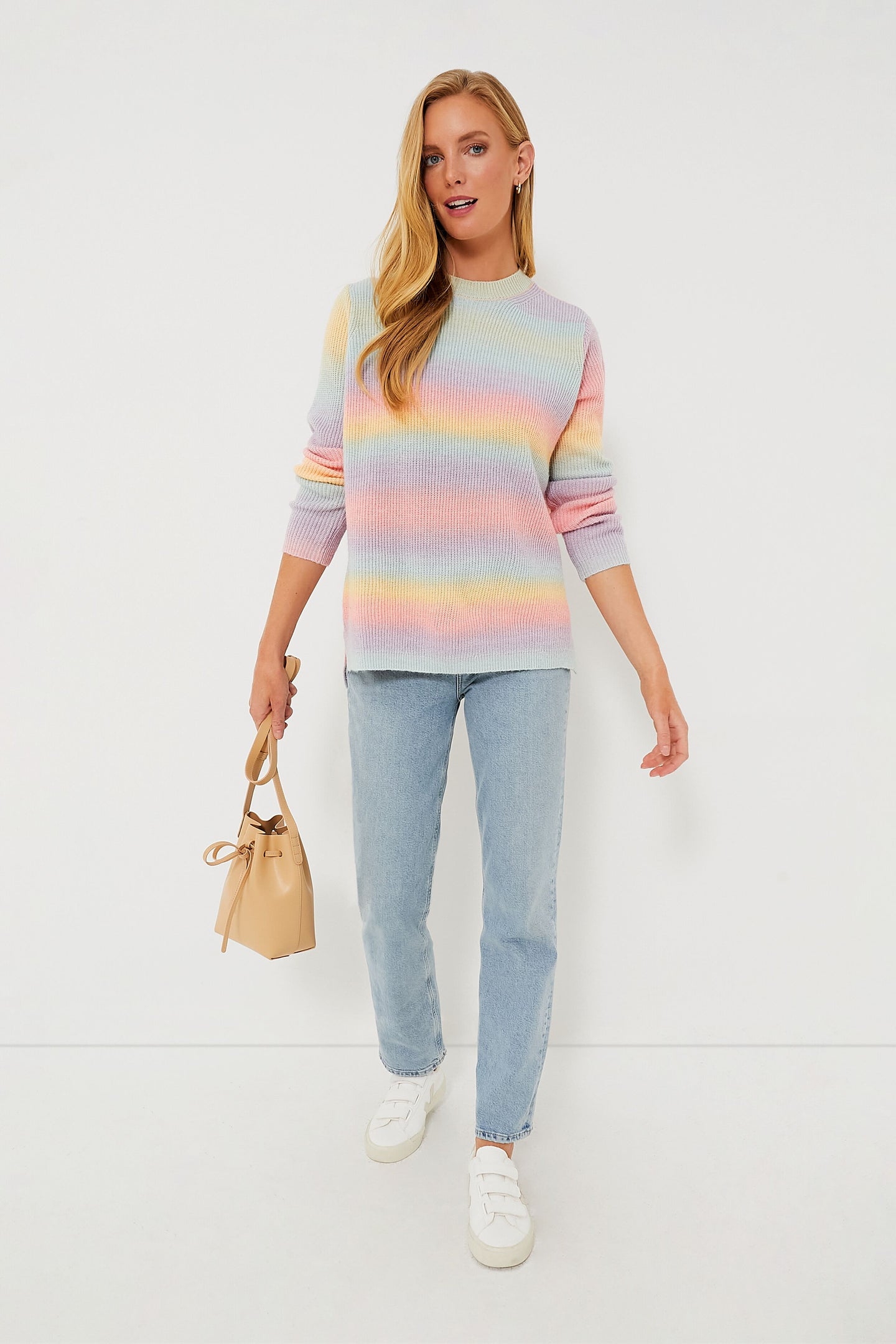 The Rainbow Candy Crewneck Sweater is a sweet addition to any look. Pair with white denim and sneakers for school drop-off and errands or opt for flats and trousers for a pop of color as you head to the office. You can't help but smile when donning this versatile, playful style!