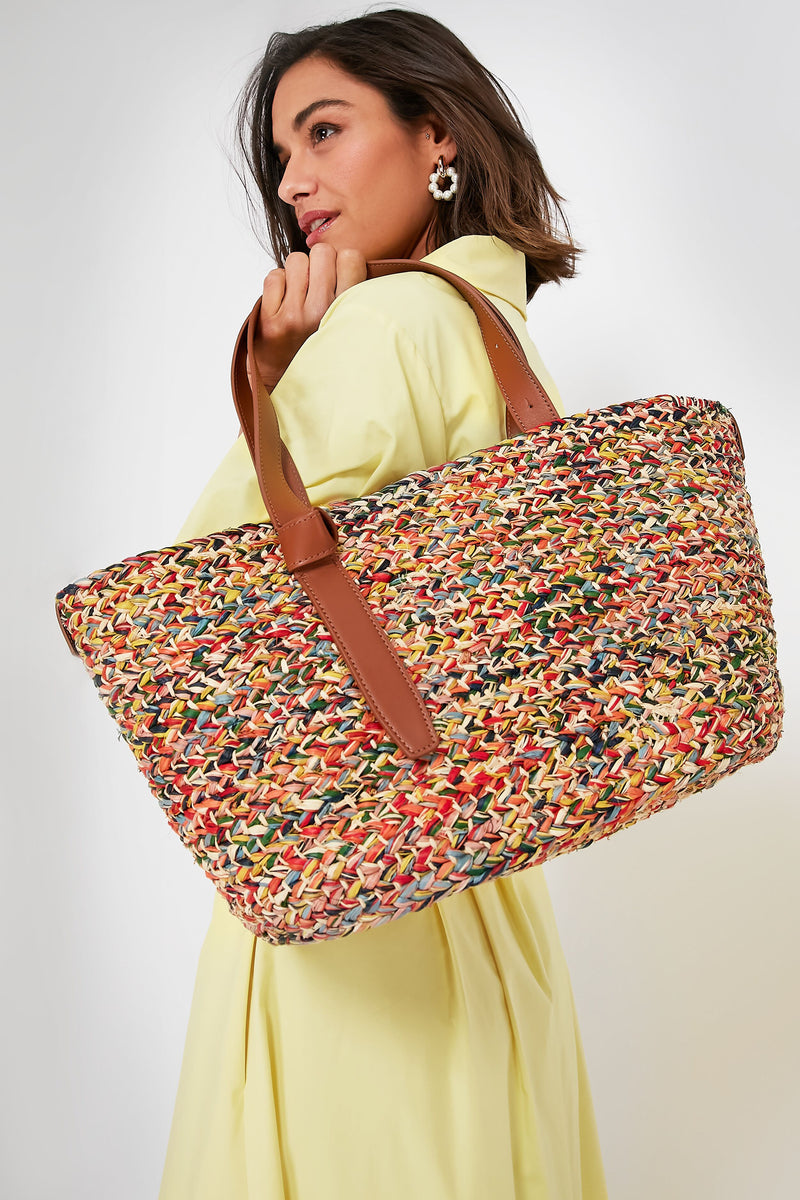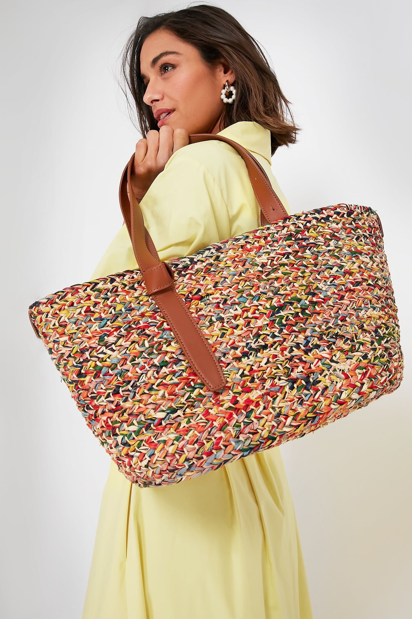 In search of the perfect go-anywhere tote? The Rainbow Mélange Bag is hand-crafted from a multicolor raffia weave with Italian Nappa leather handles that feature the brand's signature knot detail, and can be carried on the shoulder, on the forearm, or in hand. Effortless yet full of beachy glamour, this woven number can take you and your essentials anywhere from running errands to Rome, or from sipping mimosas at brunch to Seychelles.