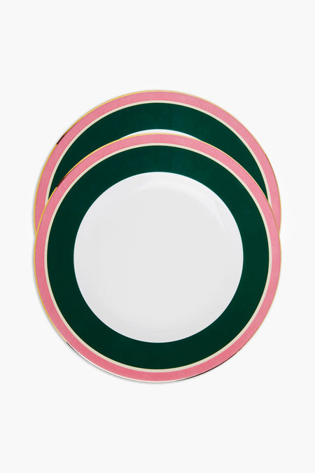 Bold, colorful and vibrant, the Rainbow Verde Dinner Plates is a delightful addition to your table setting. Crafted from ultra-fine Italian porcelain with hand finished with an 18k gold rim, this set of two is ideal for formal dinners, celebrations or everyday use. Pair them with coordinating flatware and glassware for a polished look, ensuring your meals are served in style. Bon Appetit!