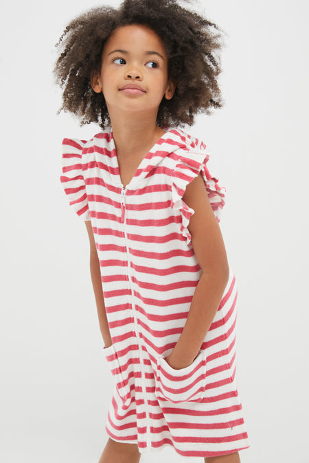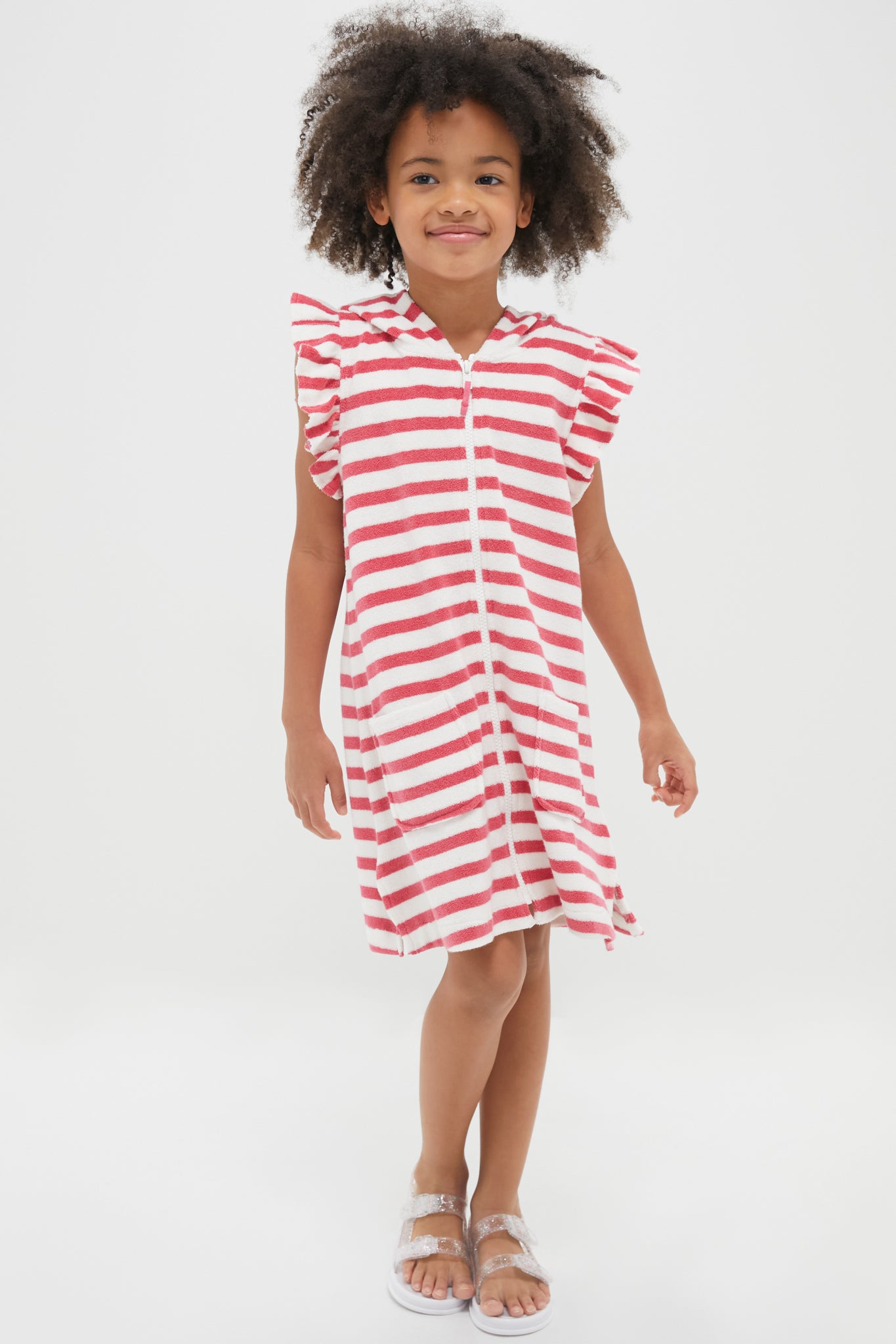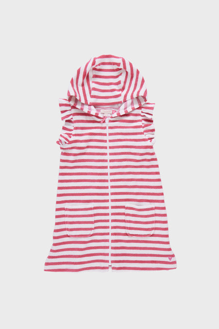 Whether poolside, lakeside or seaside, the cozy and stylish hooded Girls Terry Coverup is exactly what your little needs to warm up and keep out of the sun after a water filled day! Crafted in soft terrycloth, flirty ruffled sleeves add a fun and girly touch.