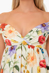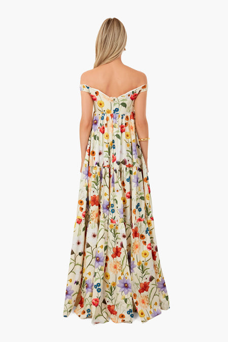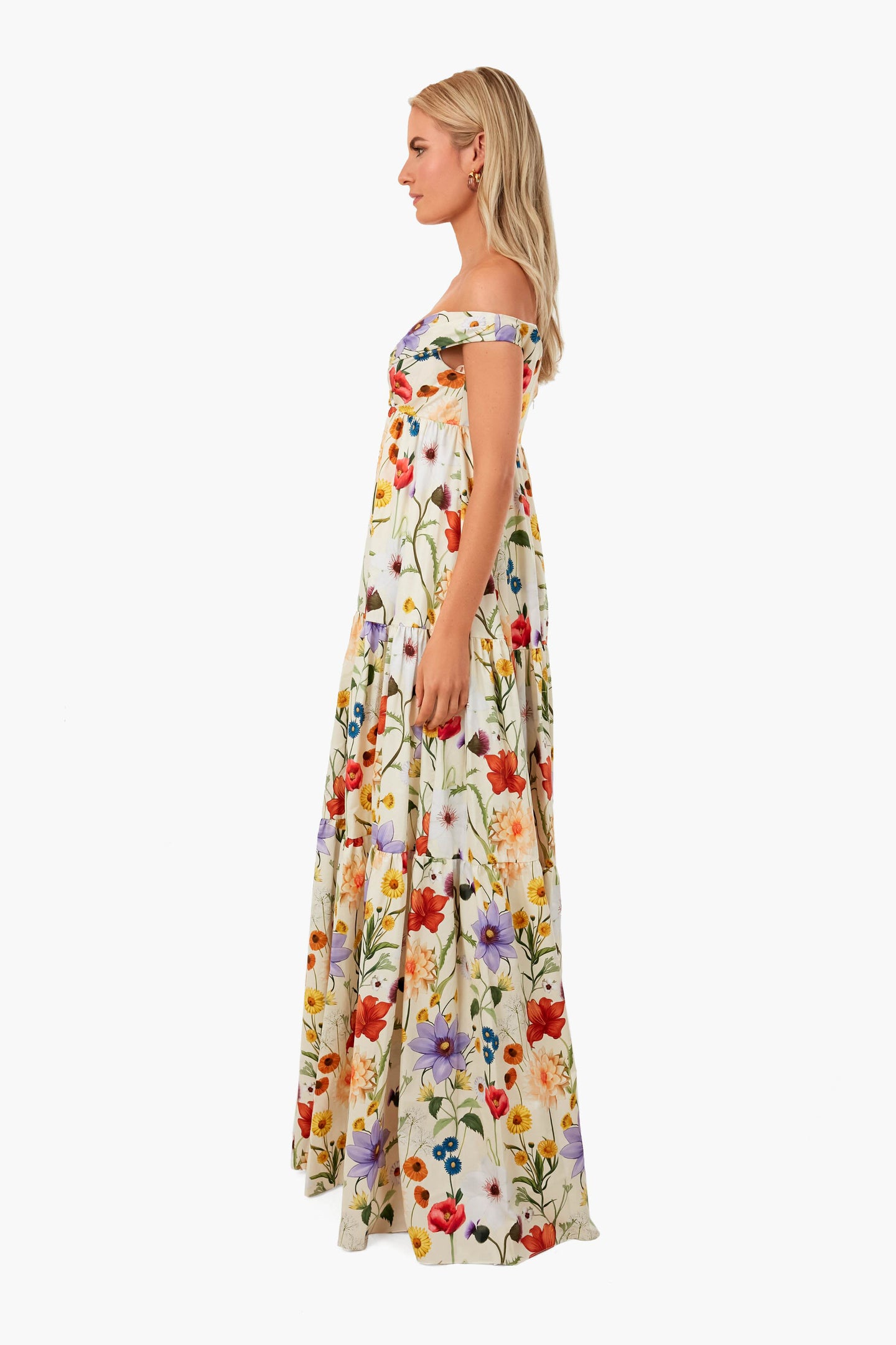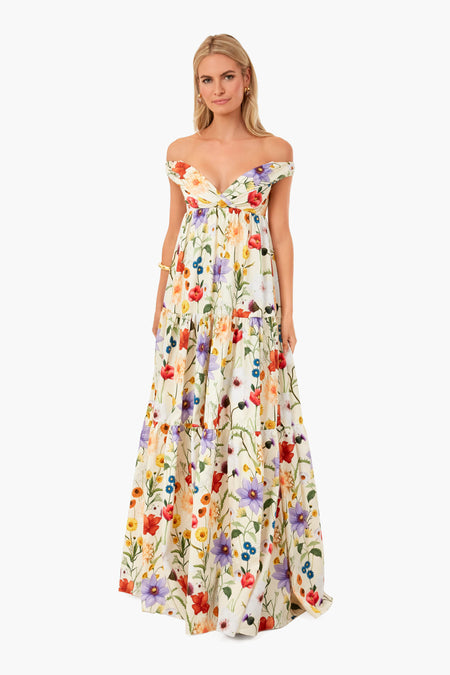 The Ravello Cream Athena Cotton Dress is a tribute to strength, confidence, and femininity. With an off the shoulder fit, a gentle v-neckline, and a glorious large floral print, this silhouette is sure to be a favorite piece in any closet. Sophisticated and stunning, this is a dress to make an entrance in. Style with heels and a clutch for formal occasions of any kind.