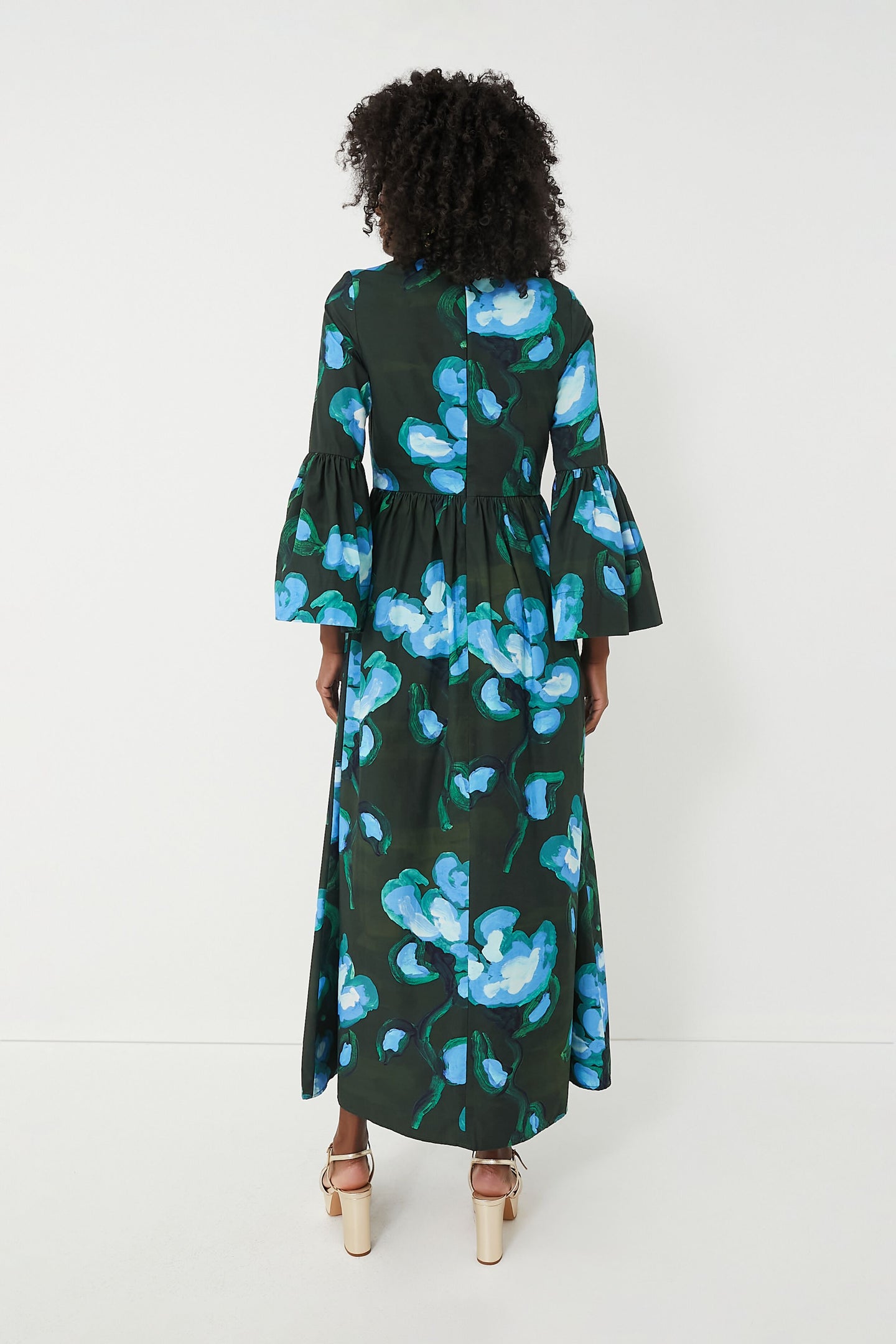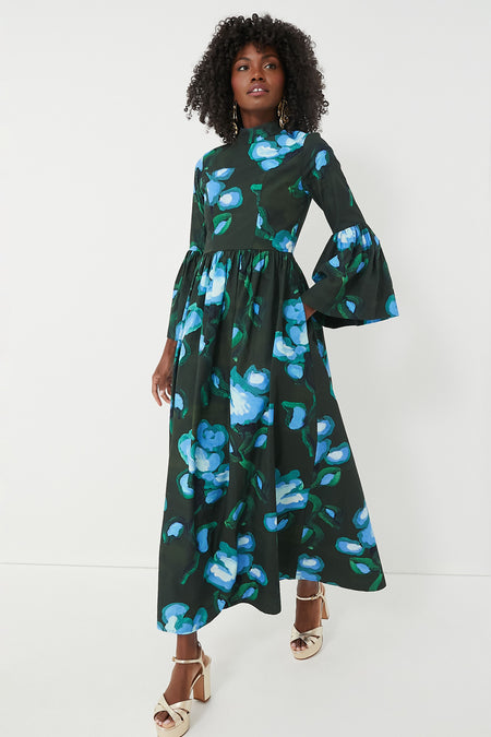 Add a touch of whimsy and femininity to your wardrobe with the Recuerdos Verde Print Matilda Dress. Made from crisp cotton poplin with expert tailoring for a fabulous fit, this maxi features an elegant stand collar, dramatic flared bell cuffs, and a slim bodice that falls into a draped A-line skirt. Taking sophistication to the max, this silhouette is perfect for parties, showers, and any RSVP you need a showstopping look for — just add heels and a clutch for a complete outfit!