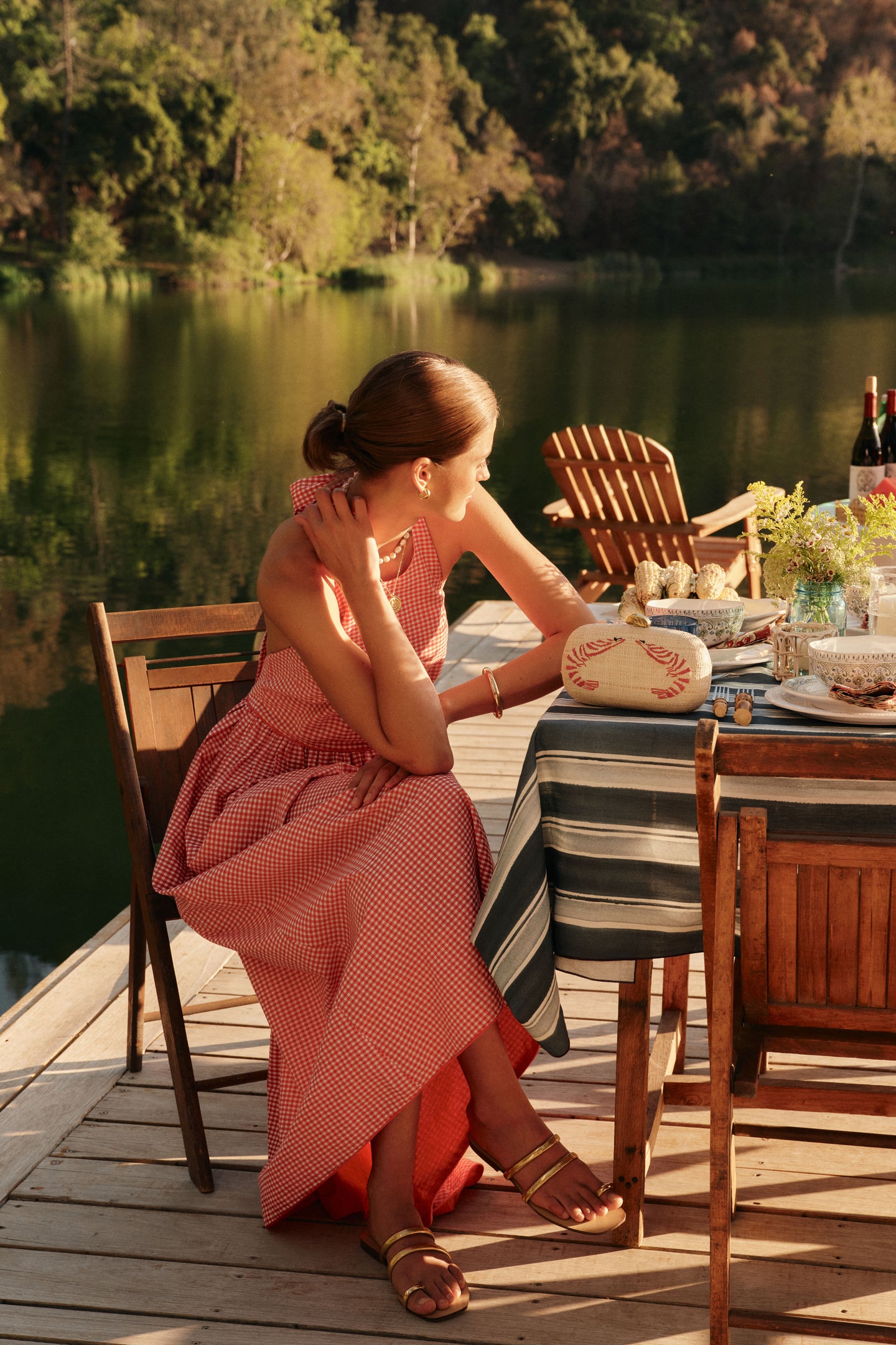 A statement summer dress, made from 100% cotton, is simply a must-have. With a little bit of drama—hello, low back!—and feminine details like piping, this dress delivers exactly what’s needed for clambakes, wine tastings, and summer soirees. While the halter back makes it easy to go necklace-free, bring the look together with statement studs and wedges.