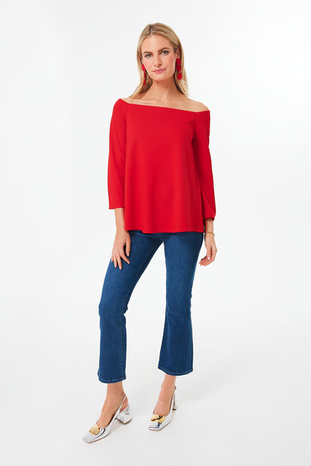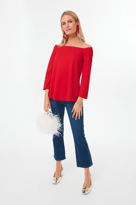 The Miranda Off The Shoulder Blouse is updated in a punchy red hue to contrast the minimalist and modern silhouette. Cut from a soft fabric with long sleeves and an A-line shape, this style makes getting dressed effortless. Pair with denim and bold jewelry for an elevated date night look!